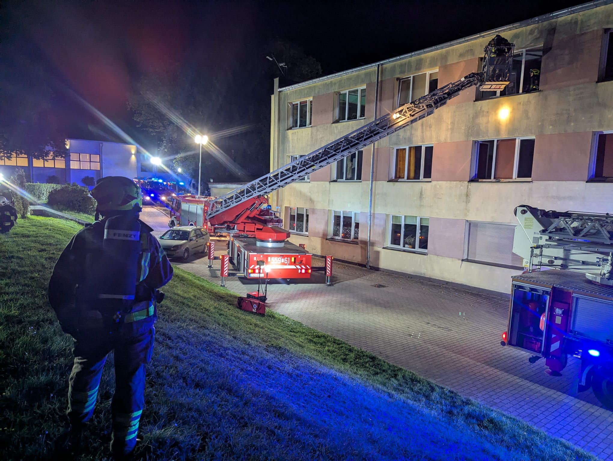 Scenariusz ćwiczeń obejmował samoewakuacje mieszkańców internatu, która odbyła się w kilka minut, zanim przyjechały pierwsze zastępy służb ratowniczych. Podjęcie 2 poszkodowanych z II piętra budynku (manekiny) z równoczesnym przeszukaniem budynku gdzie ukryty był 3 poszkodowany.