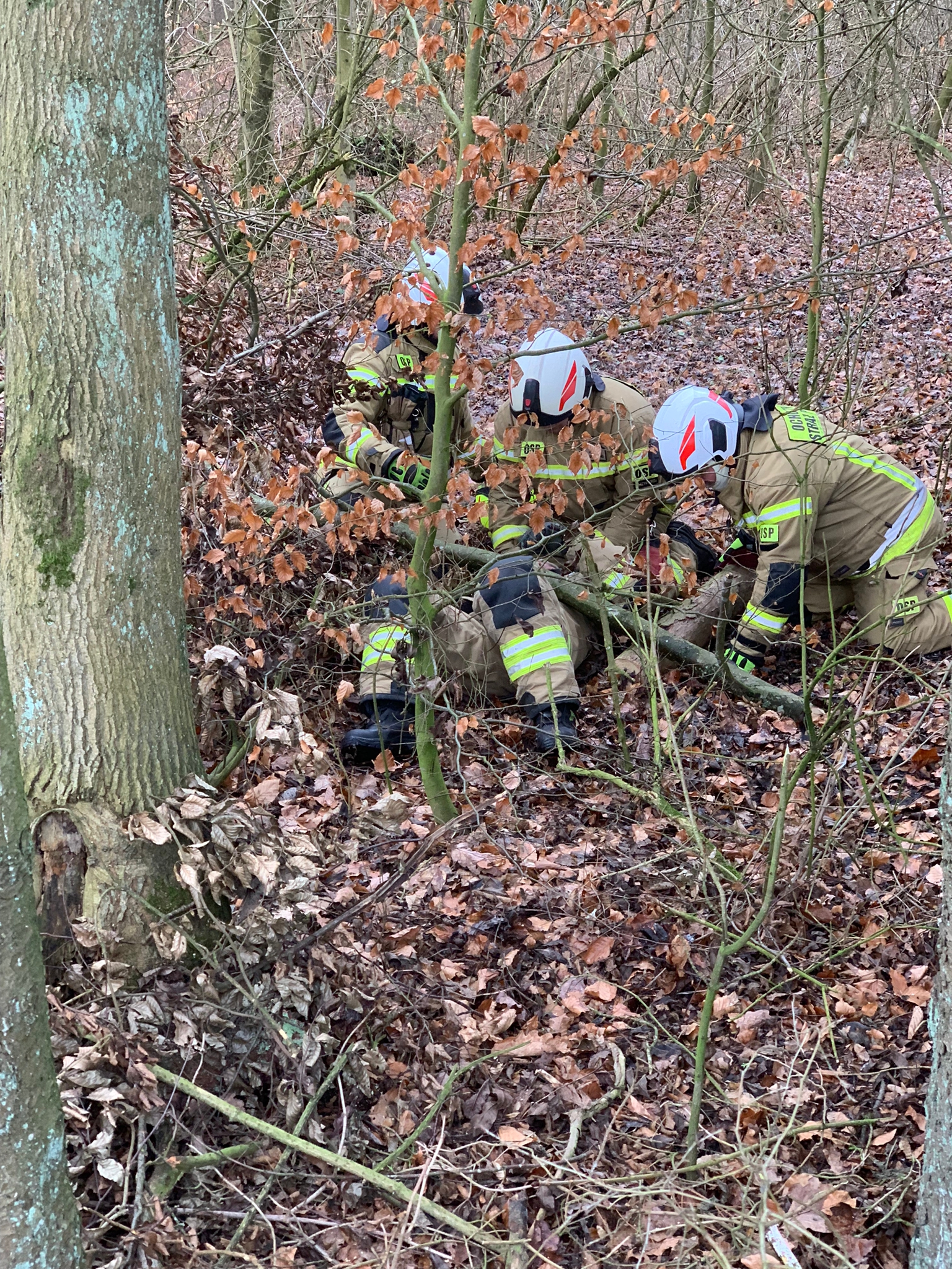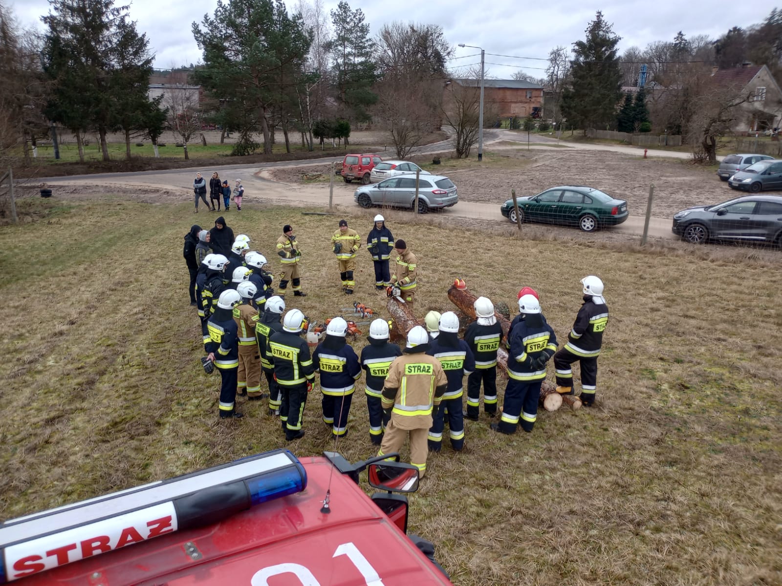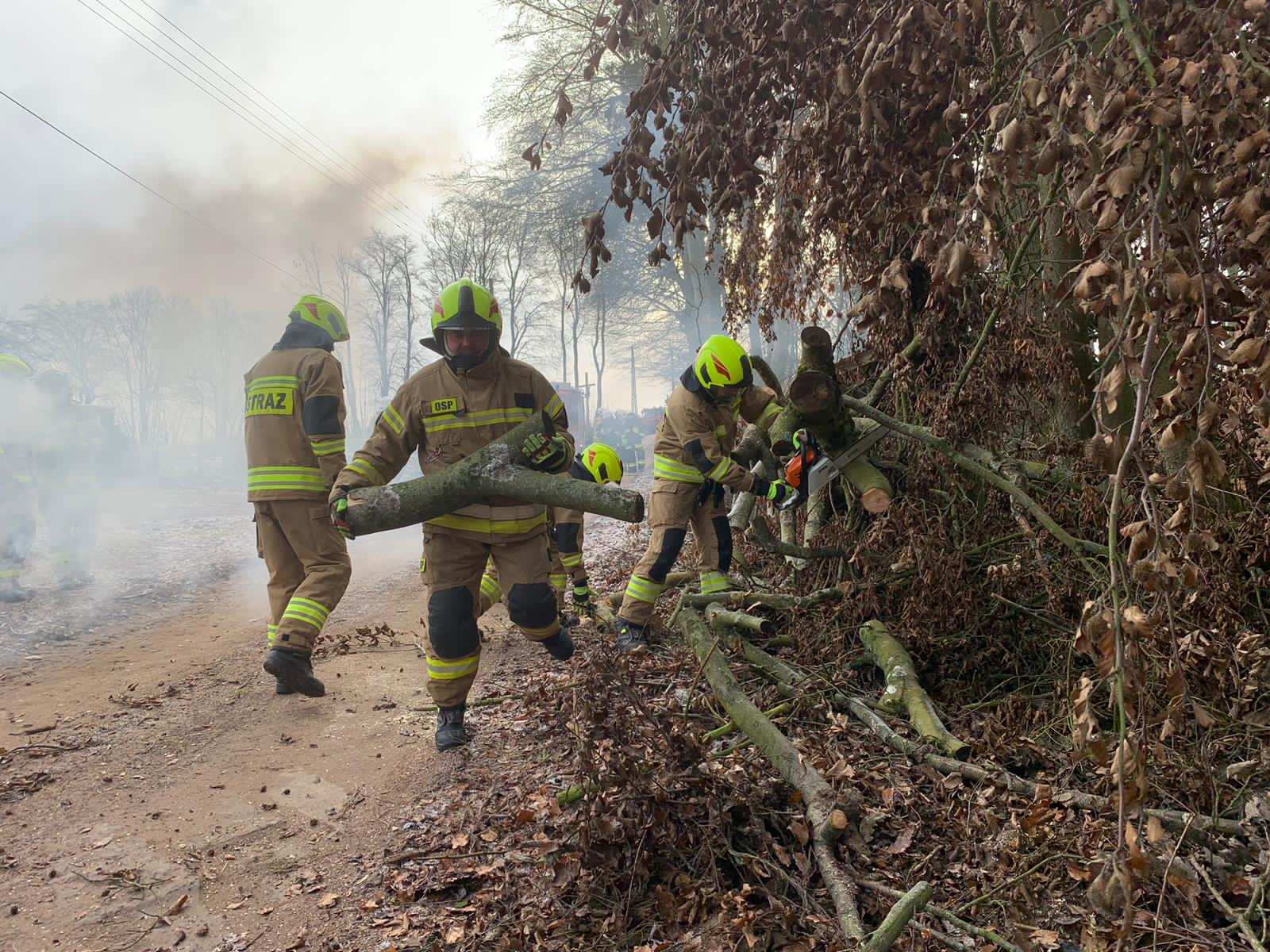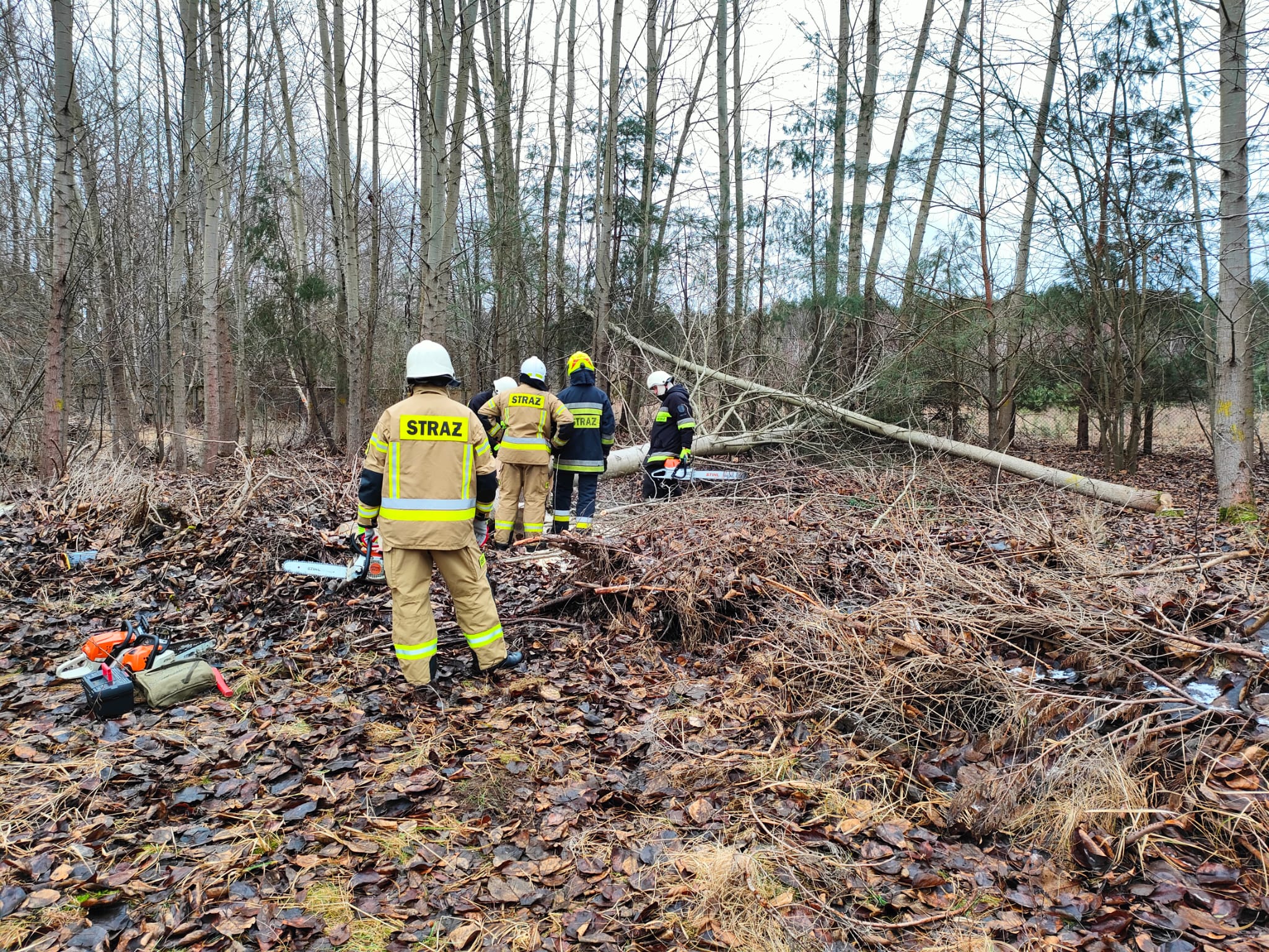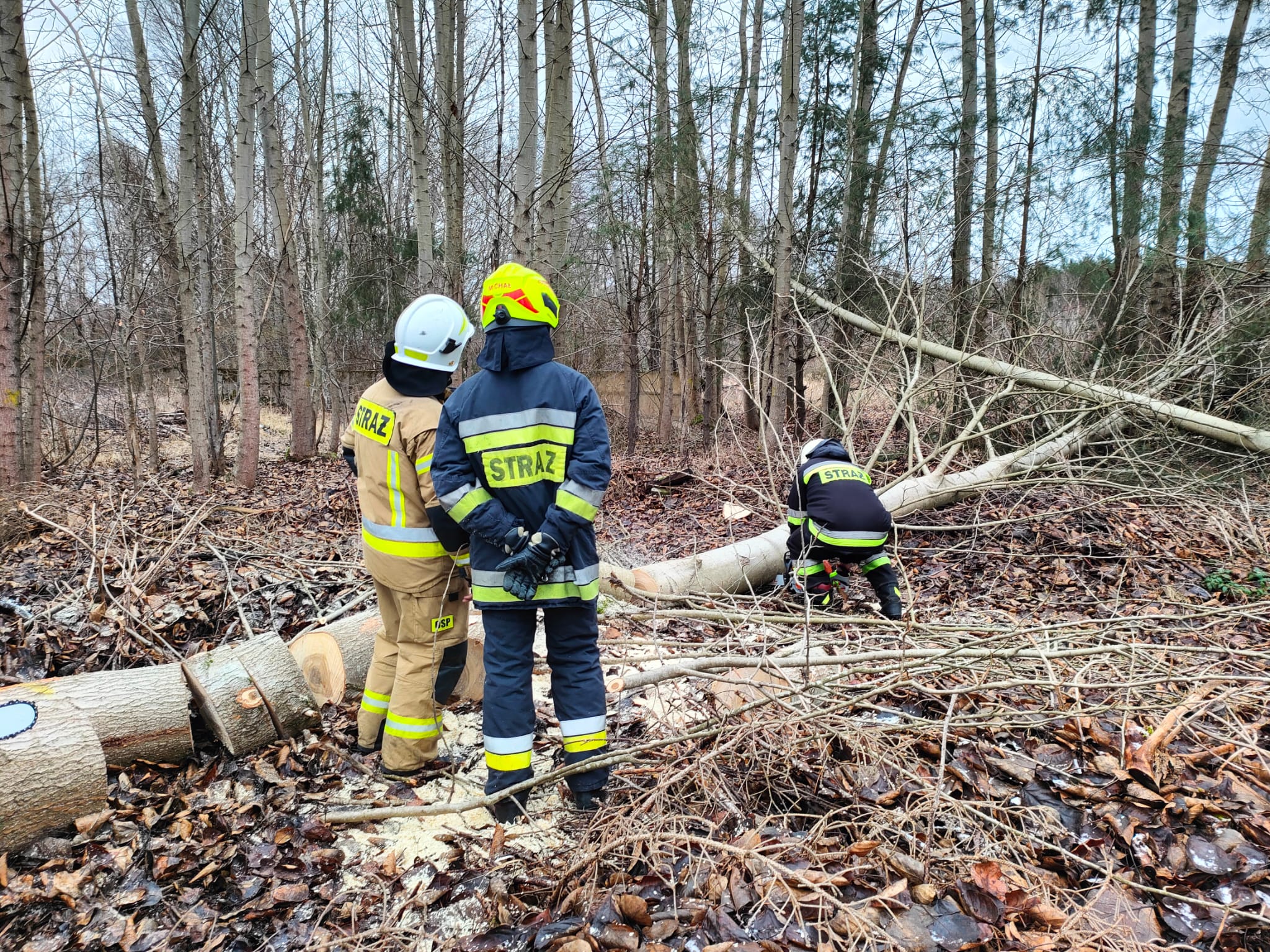 Drugim etapem ćwiczeń były ćwiczenia praktyczne, przeprowadzone na terenie leśnictwa Karsibór, w dniu 17 stycznia 2023 roku. Wzięli w nich udział strażacy OSP z Gminy Brzeżno oraz strażacy z Jednostki Ratowniczo-Gaśniczej w Świdwinie. Zajęcia z tematyki ratowniczego sprzęt mechanicznego (pilarki spalinowe) zostały przeprowadzone we współpracy z Nadleśnictwem Świdwin (reprezentowaną przez Panią Beatę Zbonikowską) oraz leśniczego Karsiboru i zarazem instruktora przedmiotowych ćwiczeń Pana Daniela Potejko. Serdecznie dziękujemy za pomoc i realizacje merytorycznych zajęć.