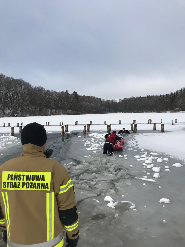Ćwiczenia strażaków na lodzie