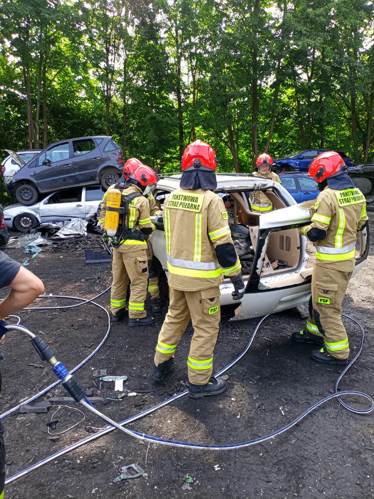 16 lipca 2021 r. w punkcie kasacji pojazdów Eco-Auto-System w Rąbinie zgodnie z planem doskonalenia zawodowego realizowane były ćwiczenia praktyczne. Tematem Ćwiczeń było: „Podstawowe techniki ratownictwa drogowego”. Przedmiotowe ćwiczenia mają na celu przede wszystkim przećwiczenie doskonalenie umiejętności obsługi oraz technik używanych w ratownictwie drogowym oraz przypomnienie zasad BHP.