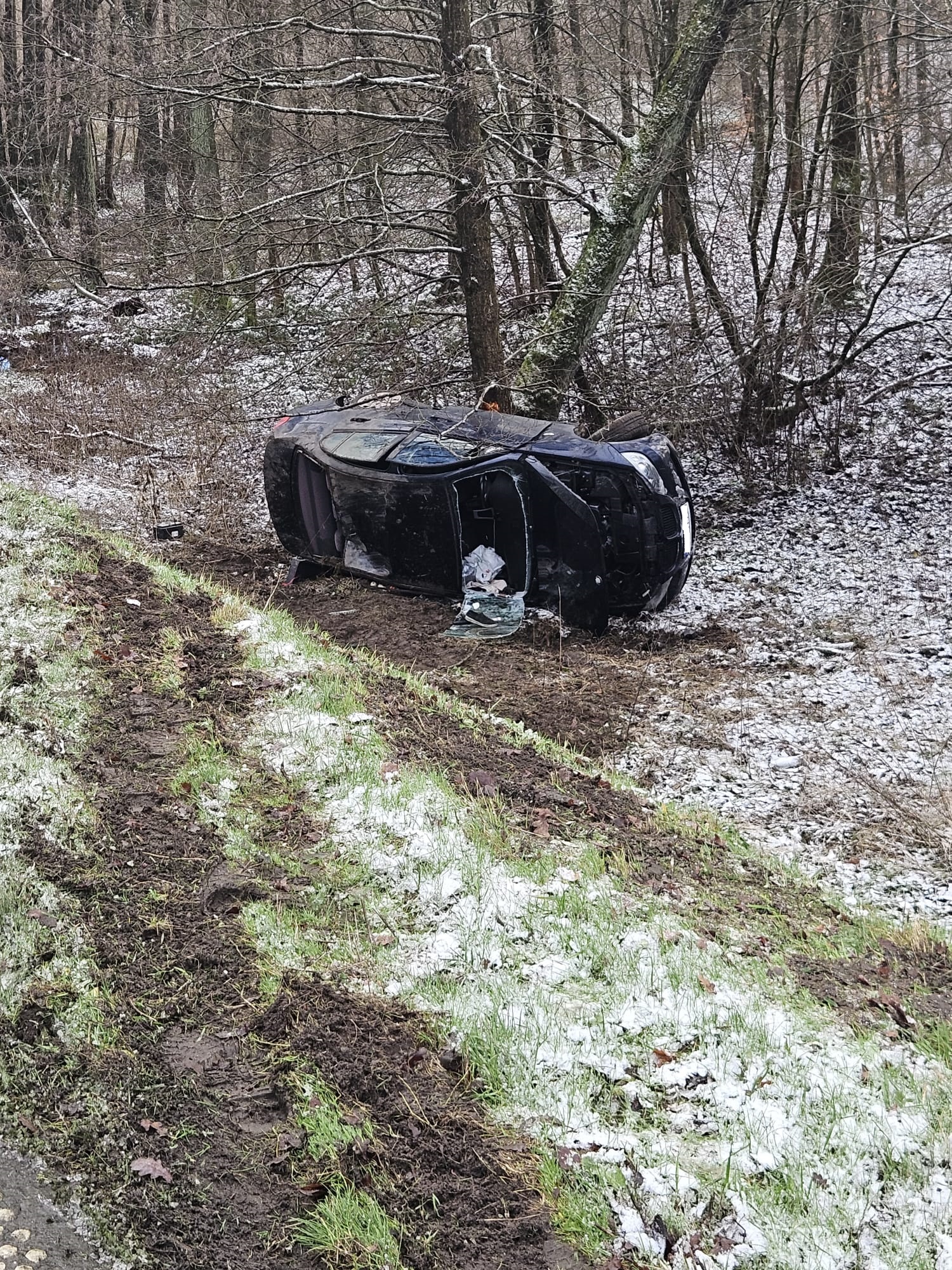 W dniu 02 stycznia 2025r. około godziny 14.00 strażacy z JRG Świdwin zostali zadysponowani do zdarzenia na drodze wojewódzkiej nr 163 pomiędzy miejscowościami Połczyn Zdrój i Kluczewo. Po dojeździe na miejsce zdarzenia zastano auto osobowe poza jezdnią leżące na boku. Samochodem podróżowała 1 osoba, która po usunięciu szyby przez służby opuściła pojazd. Na miejscu zdarzenia pracowały 3 zastępy straży pożarnej - JRG Świdwin i OSP Połczyn Zdrój. W działaniach uczestniczyła również policja oraz ZRM, który zabrał osobę poszkodowaną do szpitala.
