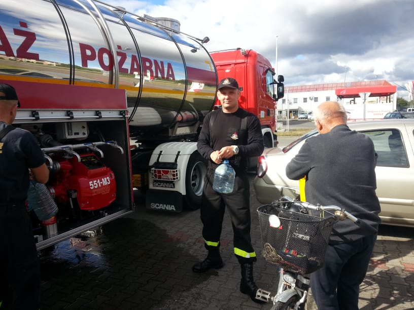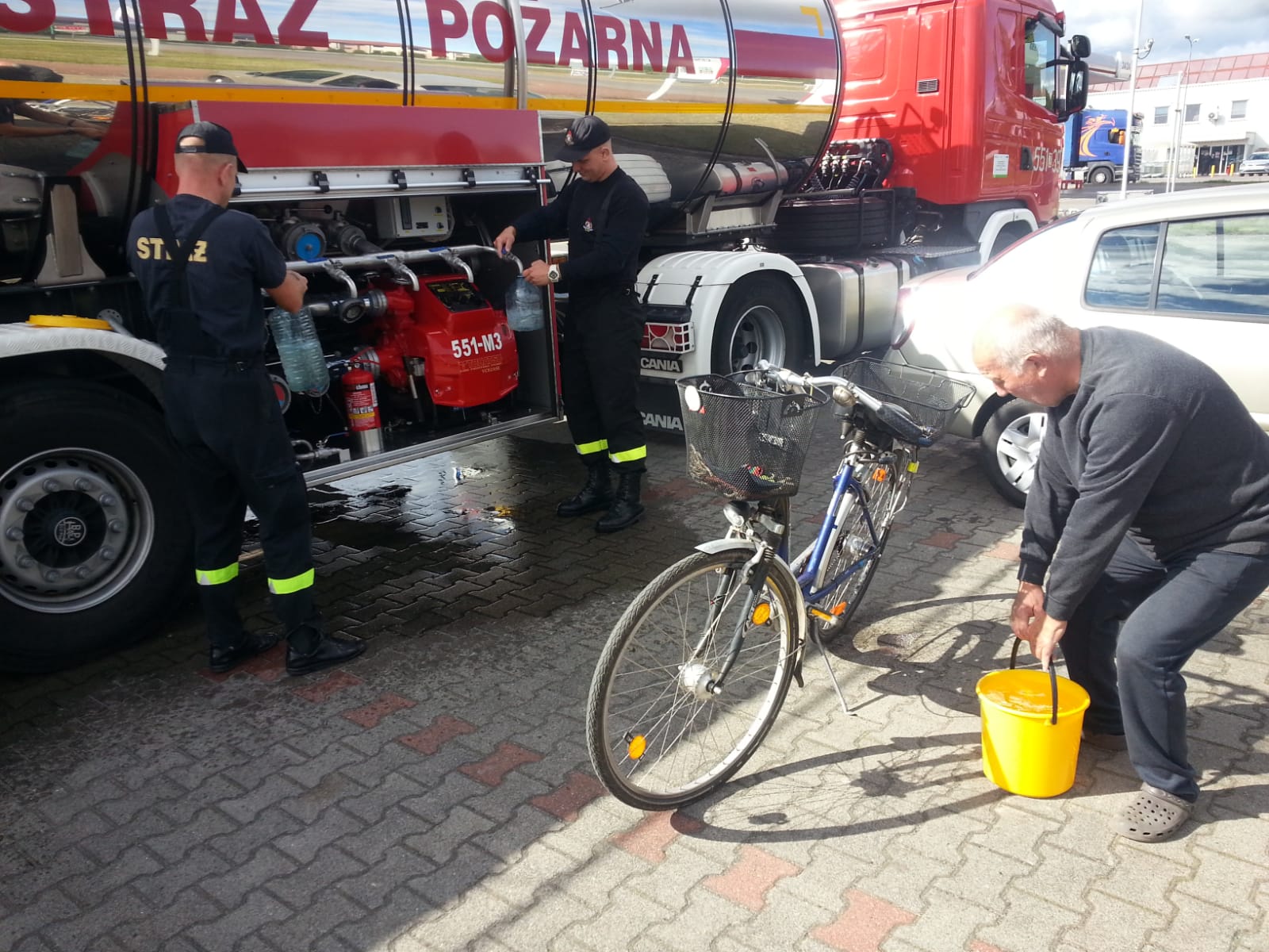 Od 21 września 2022 r. strażacy z Komendy Powiatowej Państwowej Straży Pożarnej w Świdwinie wspólnie z Zakładem Usług Komunalnych w Świdwinie dowozili wodę dla mieszkańców, którzy w związku z przekroczeniem parametru mikrobiologicznego na Stacji Uzdatniania Wody przy ul. Wojska Polskiego nie mogli jej wykorzystywać do spożycia i na potrzeby gospodarcze.