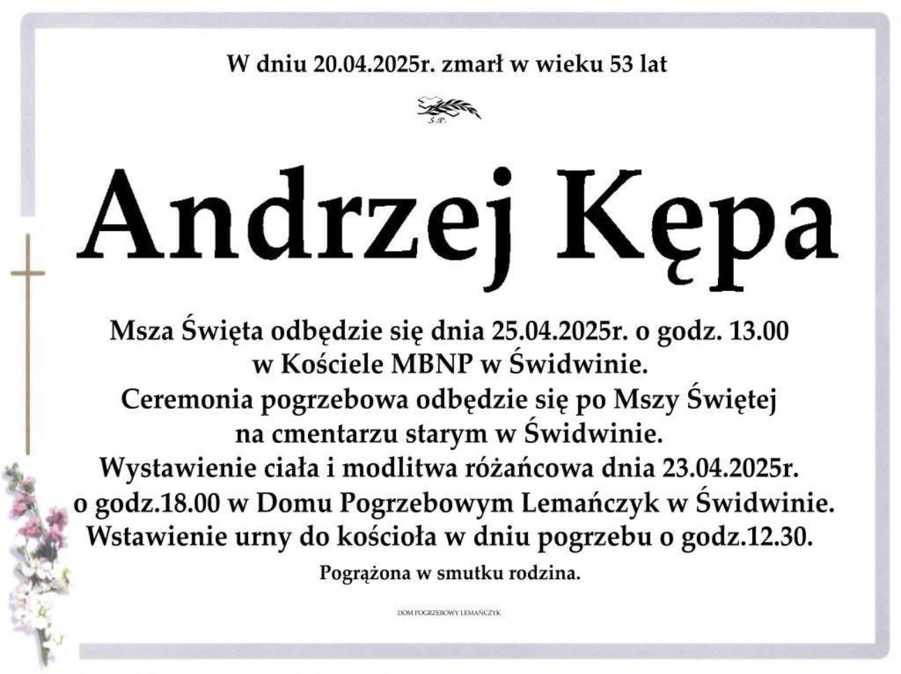 Informacja o uroczystości pogrzebowej śp. kpt. w st. spocz. Andrzeja Kępy.