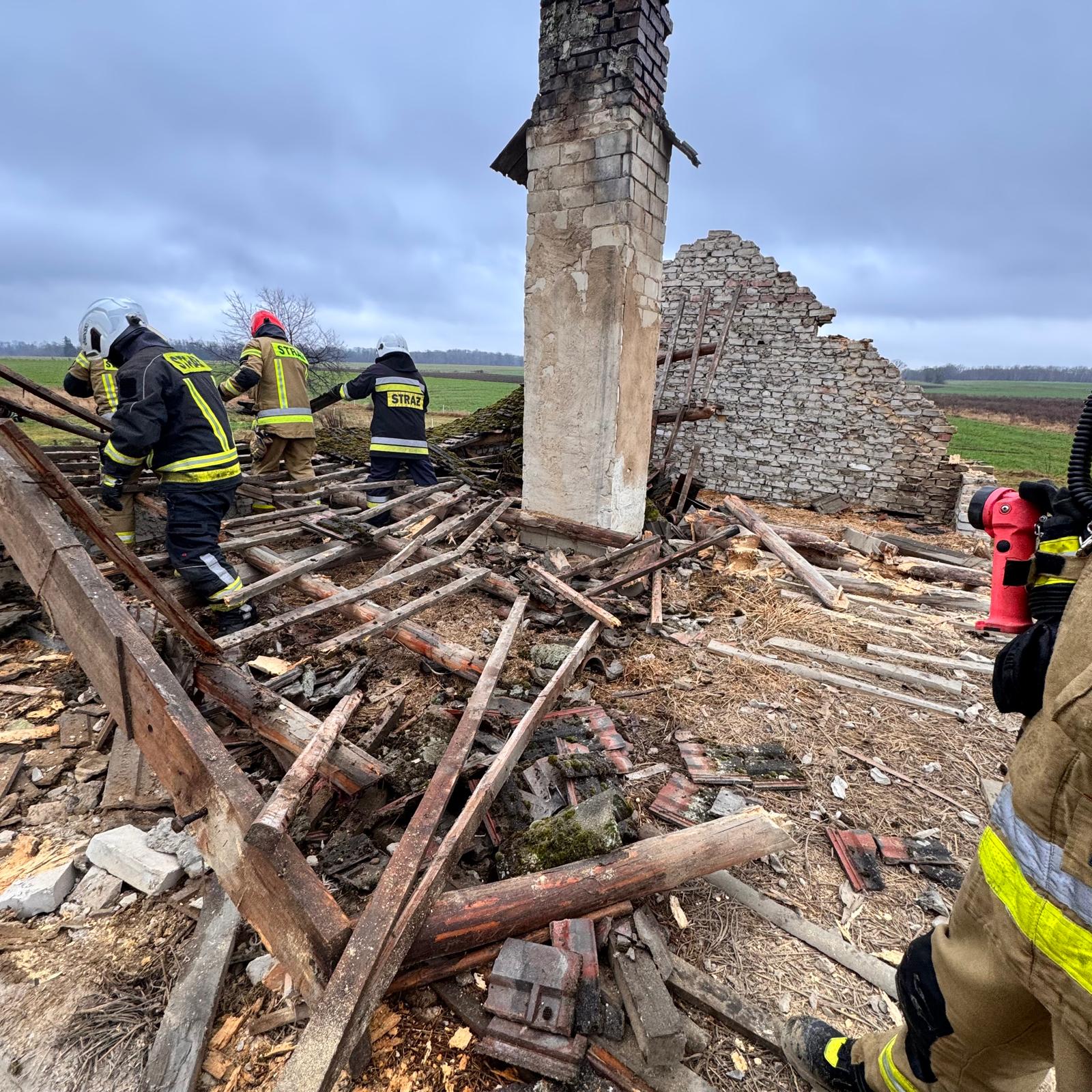 Po przybyciu na miejsce zdarzenia zastępów z JRG Świdwin i OSP Rąbino stwierdzono, że zawalił się dach dwuspadowy. Na szczęście obyło się bez osób poszkodowanych. Działania zastępów PSP polegały na zabezpieczeniu miejsca zdarzenia, sprawdzeniu miejsca katastrofy pod względem osób poszkodowanych, usunięciu części konstrukcji dachu oraz wyburzeniu niestabilnej ściany szczytowej. Po zakończeniu działań miejsce zdarzenia zabezpieczono przed dostępem osób postronnych. O zdarzeniu poinformowano Powiatowy Inspektorat Nadzoru Budowlanego.