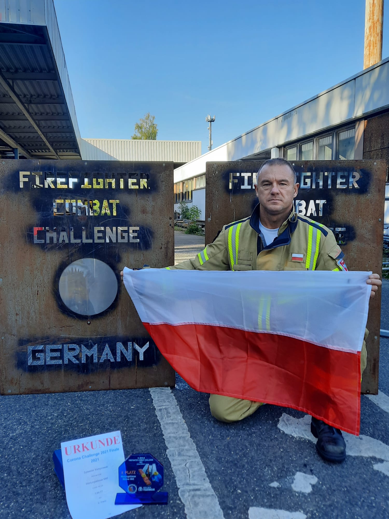 Kolejnym startem Naszego strażaka były Mistrzostwa FireFit organizowane w Gardelegen (Niemcy) w dniach 16 – 17 października 2021 r. W starcie indywidualnym mł. ogn. Sylwester Kemprowski zajął II miejsce w kategorii wiekowej 45 plus. Natomiast III miejsce wywalczył startując w tandemie z Thomasem Beah z Niemiec w kategorii wiekowej 45 plus.