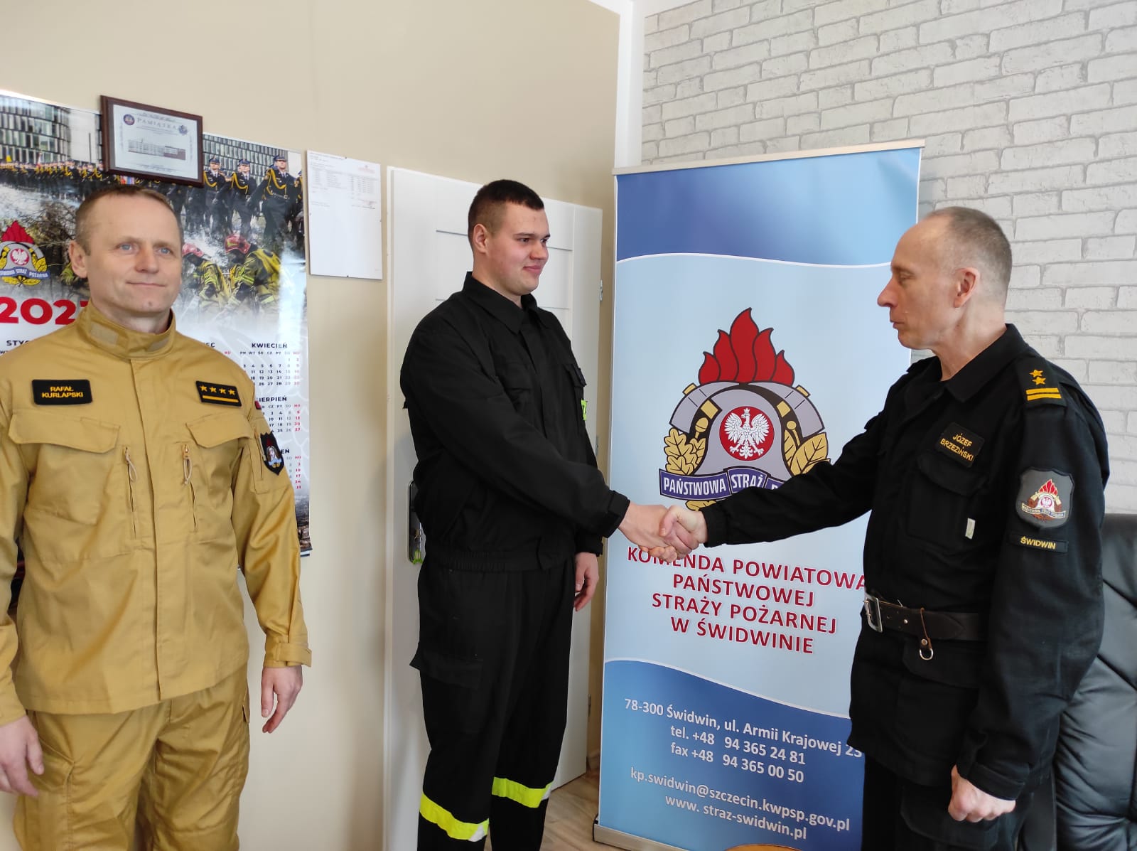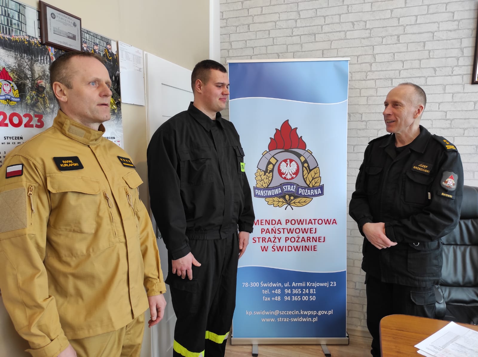 7 marca 2023 roku Komendant Powiatowy Państwowej Straży Pożarnej w Świdwinie bryg. Józef Brzeziński w asyście st. kpt. Rafała Kurlapskiego – Dowódcy Jednostki Ratowniczo-Gaśniczej w Świdwinie oficjalnie przywitali str. Jakuba Raniowskiego, który ukończył szkolenie podstawowe strażaka jednostki ochrony przeciwpożarowej. Szkolenie było organizowane przez Szkołę Aspirantów Państwowej Straży Pożarnej w Poznaniu z wykorzystaniem kadry i bazy dydaktycznej Ośrodka Szkolenia w Bornem Sulinowie Komendy Wojewódzkiej Państwowej Straży Pożarnej w Szczecinie.