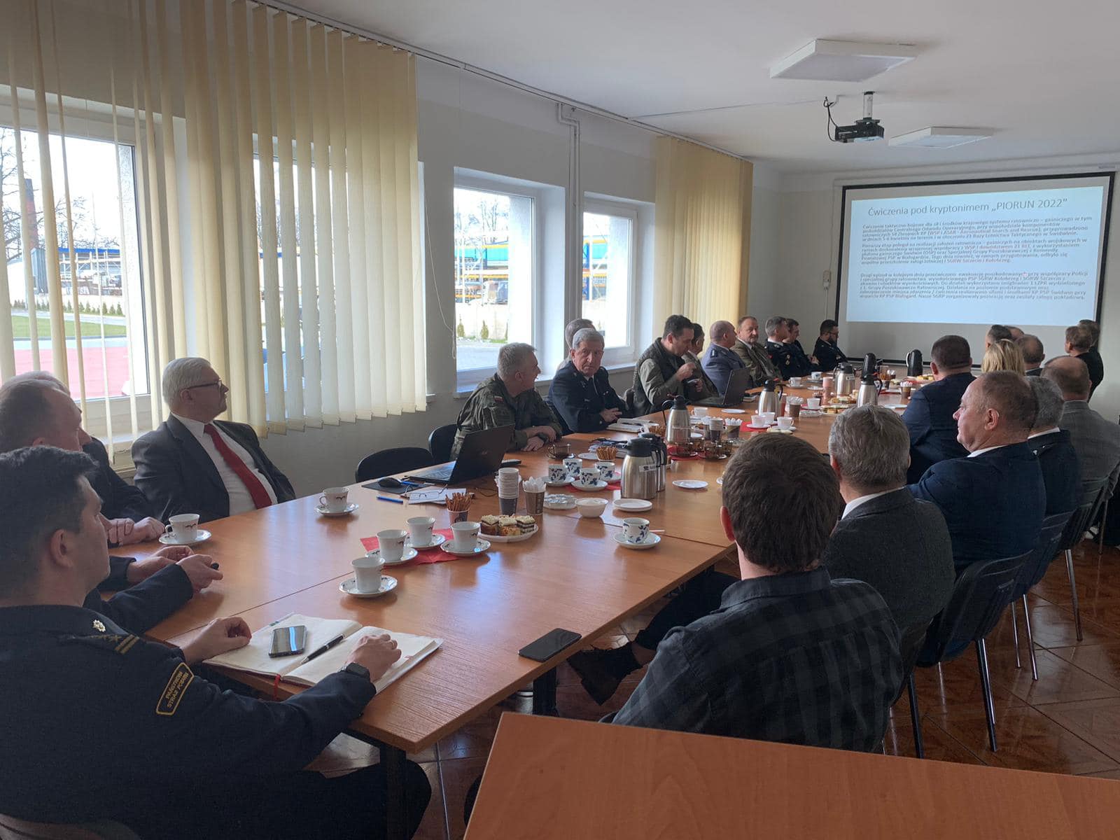 22 lutego 2023 r. w Komendzie Powiatowej Państwowej Straży Pożarnej w Świdwinie odbyła się narada podsumowująca działalności świdwińskich strażaków w minionym roku. Spotkanie rozpoczęło się złożeniem meldunku Zastępcy Zachodniopomorskiego Komendanta Wojewódzkiego Państwowej Straży Pożarnej w Świdwinie st. bryg. Markowi Popławskiemu przez mł. kpt. Marka Gomułkę – Zastępca Dowódcy JRG. Pan Czesław Hoc – Poseł na Sejm RP zaszczycił swoją obecnością świdwińskich strażaków oraz wyraził uznanie dla strażaków Państwowej Straży Pożarnej oraz Ochotniczej Straży pożarnej.