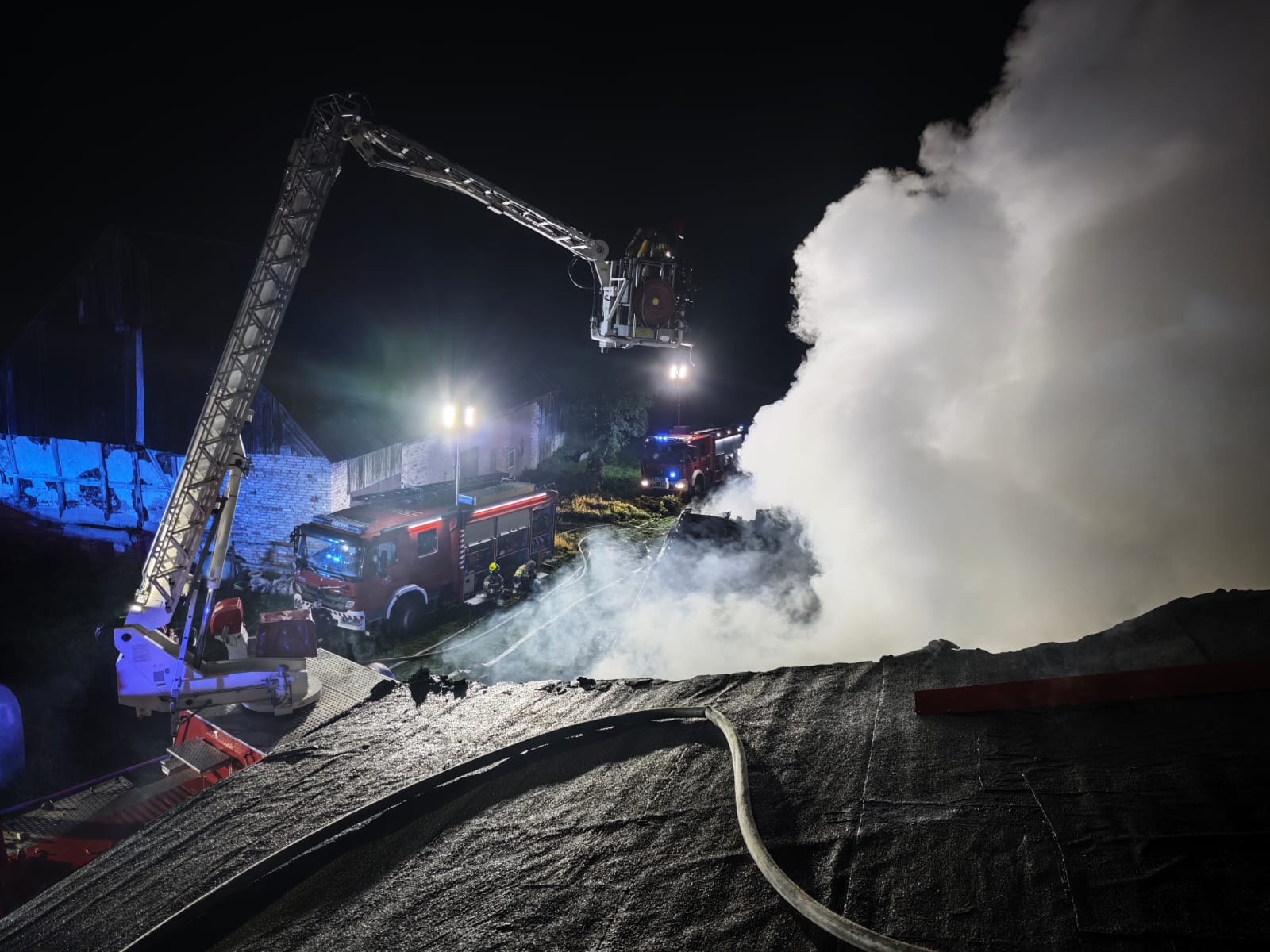 Po przyjeździe na miejsce zdarzenia zastano część budynku gospodarczego stojącą w ogniu.