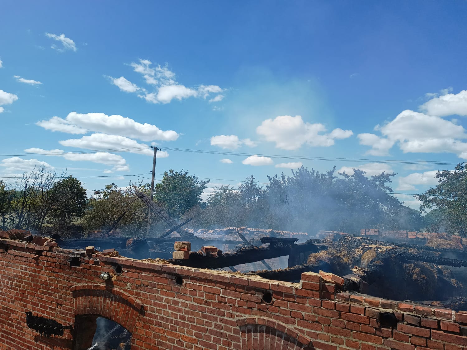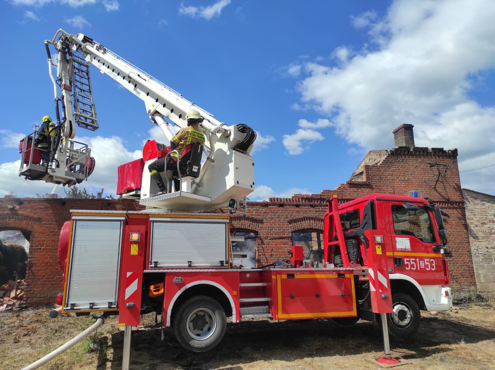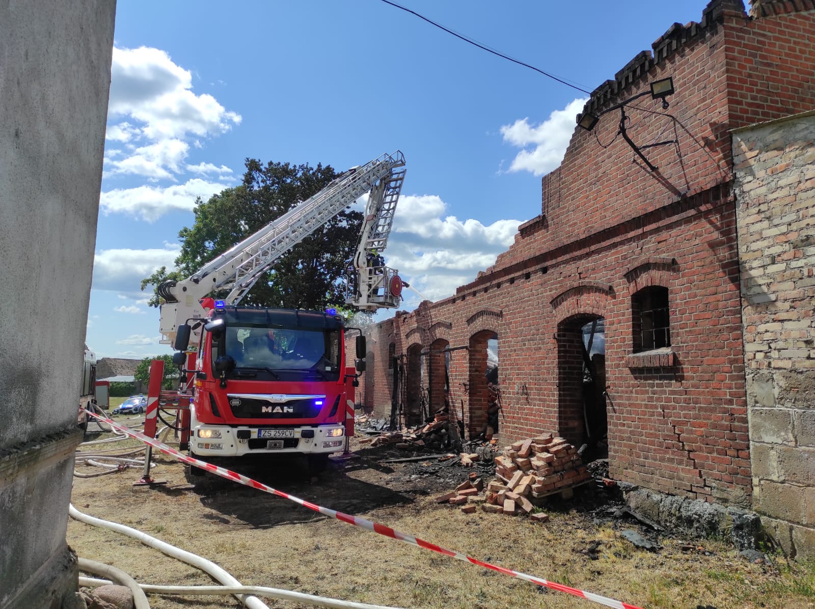Po przyjeździe na miejsce zdarzenia zastano cały budynek objęty ogniem (stodoła murowana z cegły i drewnianą konstrukcją dachu pokryta papą).