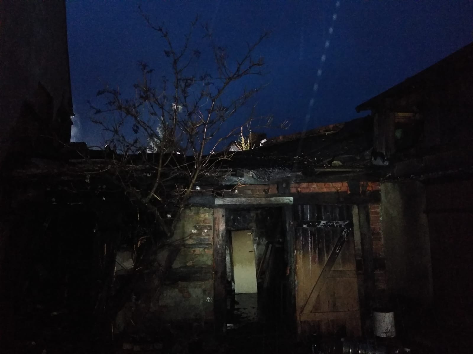 Po dojeździe na miejsce zdarzenia stwierdzono pożar murowanego budynku gospodarczego połączonego z budynkiem mieszkalnym i garażami. Mieszkańcy ewakuowali się samodzielnie przed przybyciem służb ratowniczych.