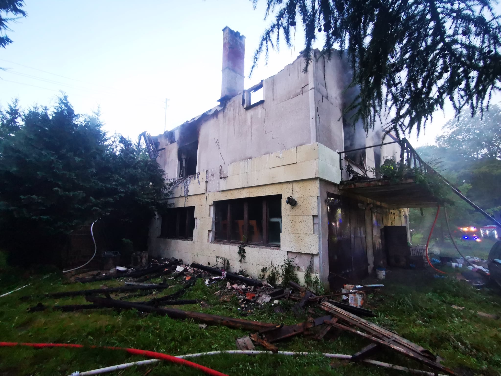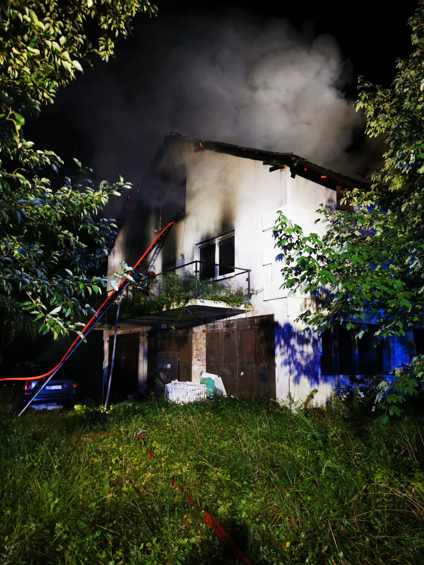 Po dojeździe na miejsce zdarzenia zastępów straży pożarnej, zastano objęte całe poddasze ogniem oraz pierwsze piętro budynku jednorodzinnego.