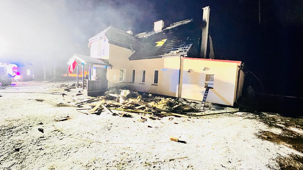 Po dojeździe na miejsce zdarzenia zastępów straży pożarnej, zastano budynek mieszkalny z dachu którego wydobywały się kłęby dymu języki ognia. Mieszkańcy samodzielnie opuścili budynek przed przybyciem służb ratowniczych i nie wymagali pomocy medycznej.