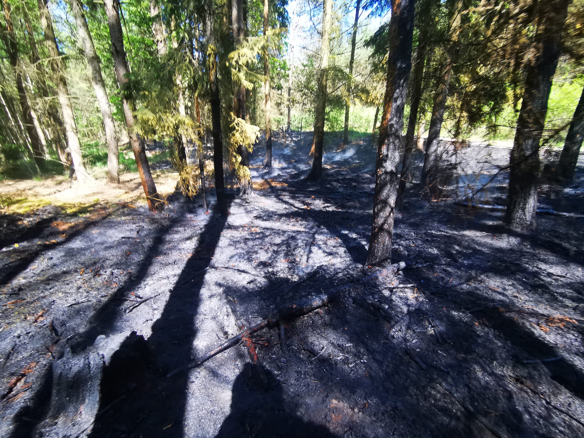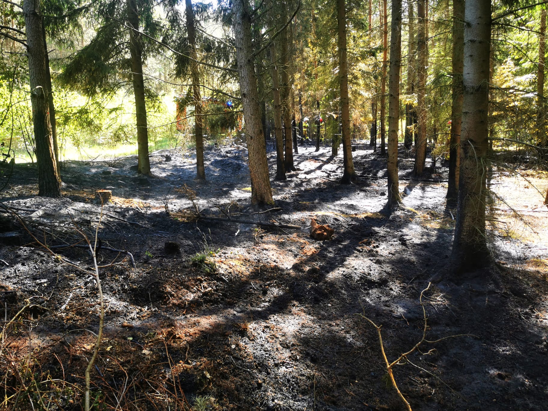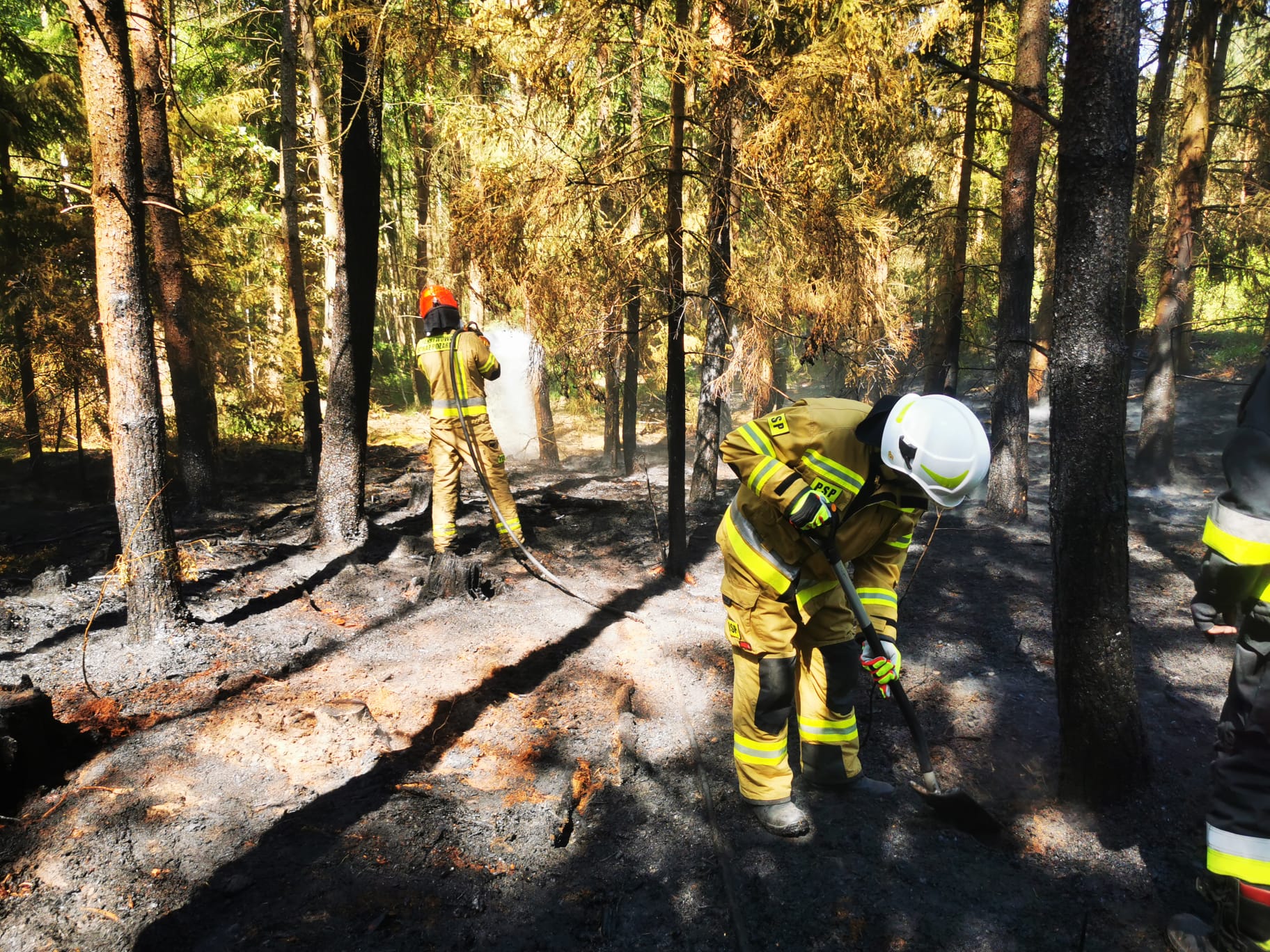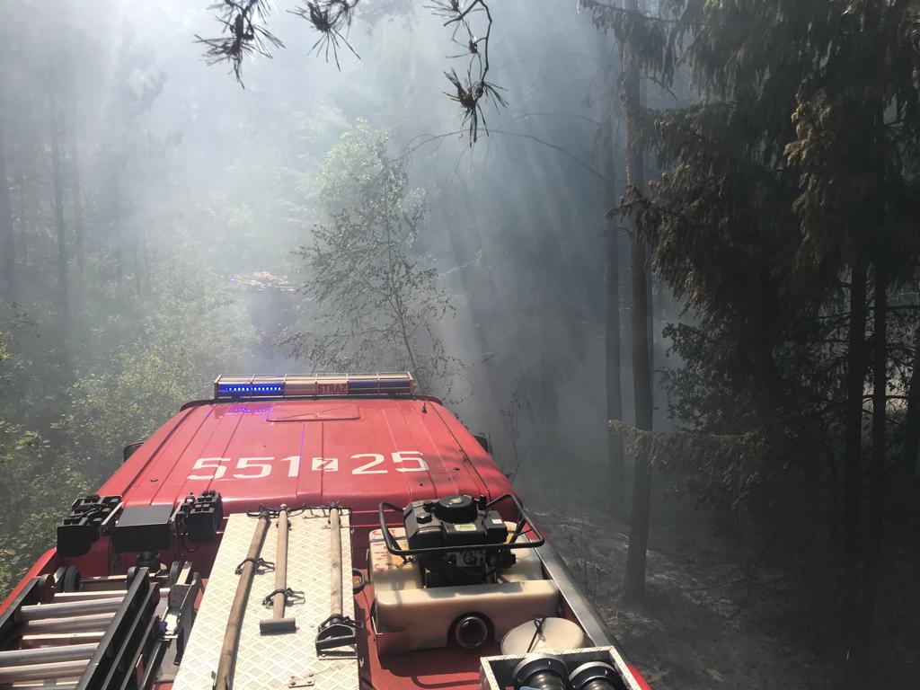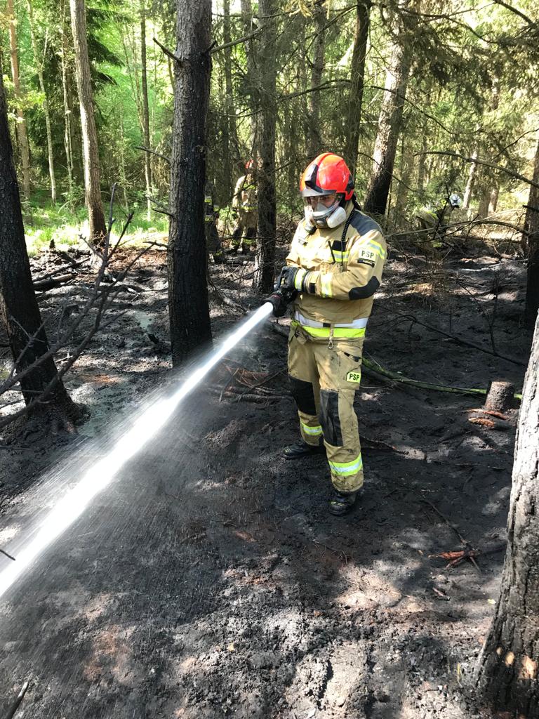 Po dojeździe straży pożarnej na miejsce zdarzenia zostano palącą się ściółkę w lesie i nadpalone drzewa na obszarze ok. 0,3 ha.
