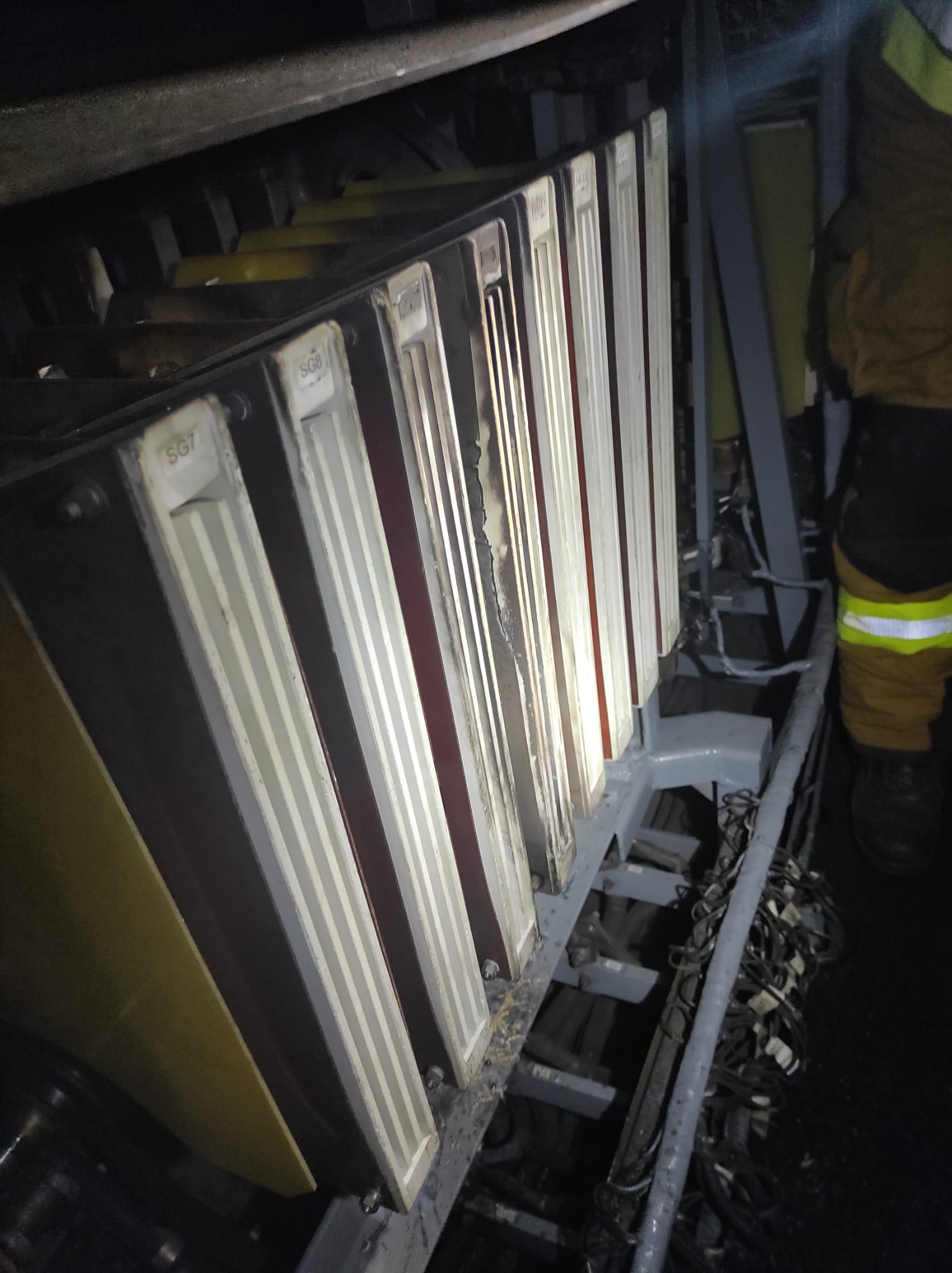 Po dojeździe na miejsce zdarzenia zastępów straży pożarnej, zastano wydobywający się dym w przedziale napędowym lokomotywy. Maszynista opuścił samodzielnie lokomotywę, wcześniej opuszczając pantografy oraz odłączając zasilanie baterii.
