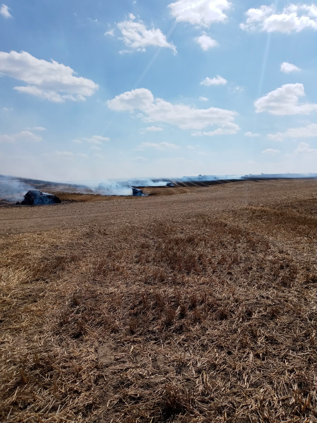 Po dojeździe straży pożarnej na miejsce zdarzenia okazało się, że pożarem objęte jest 7 hektarów ścierniska oraz kilkanaście snopków słomy.