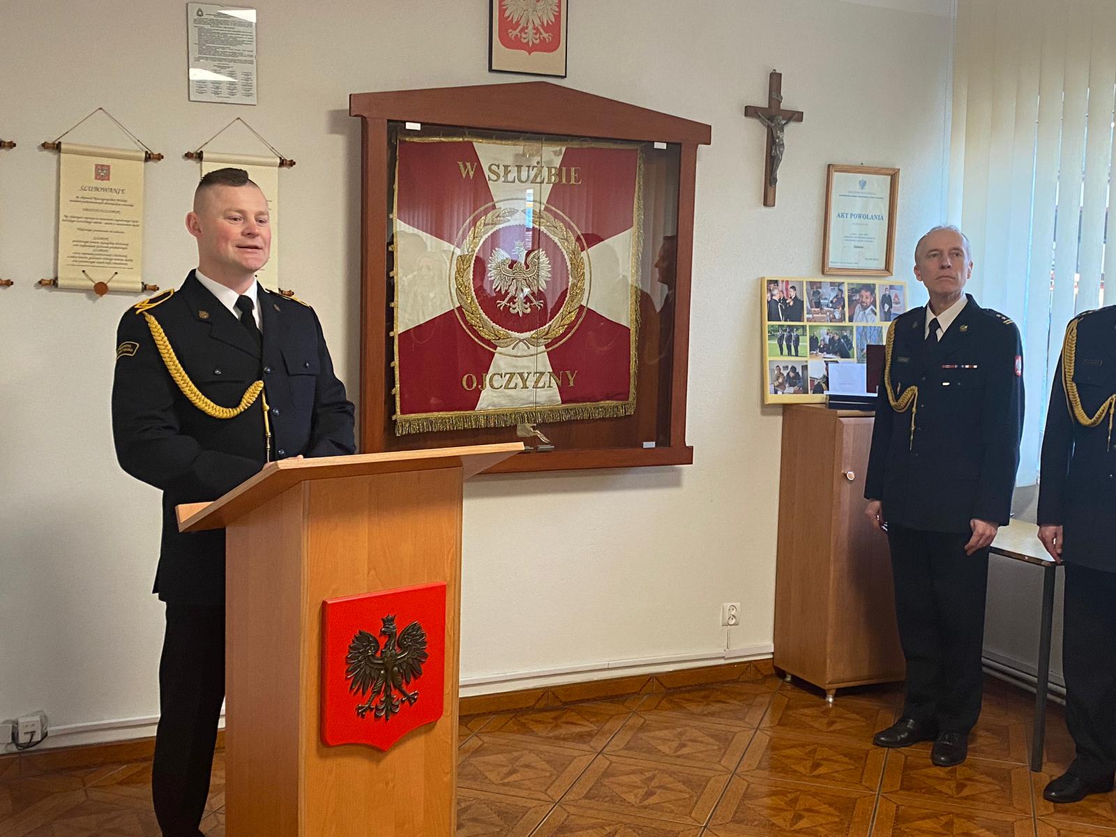 w Świdwinie odbyło się uroczyste pożegnanie odchodzących na zaopatrzenie emerytalne st. asp. Macieja Kowalskiego oraz st. ogn. Mariusza Górę. Uroczystość rozpoczął Komendant Powiatowy Państwowej Straży Pożarnej w Świdwinie bryg. Józef Brzeziński, który podziękował za pełną oddania i zaangażowania wieloletnią służbę.