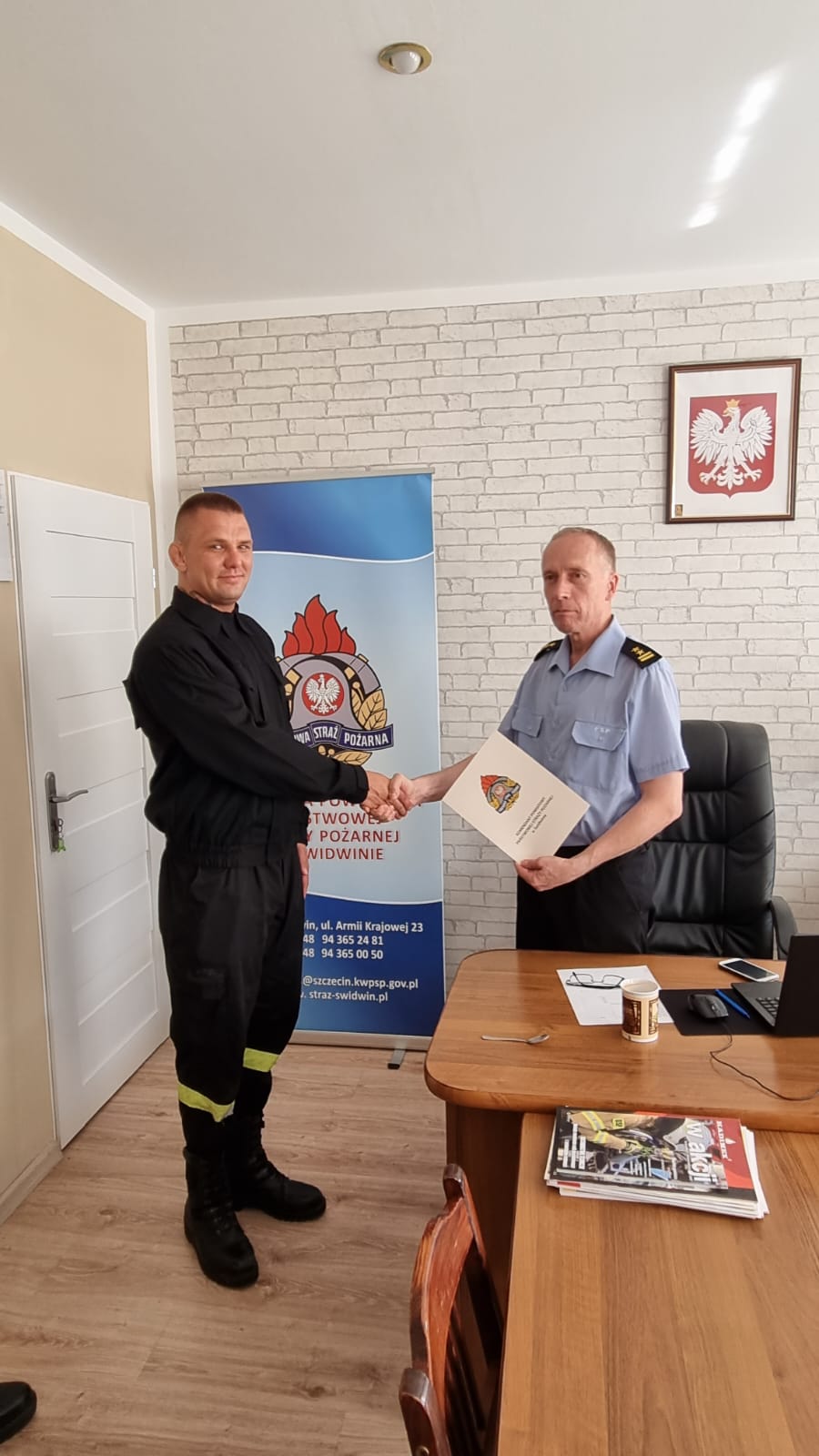 Od sierpnia 2022 r. Komenda Powiatowa Państwowej Straży Pożarnej w Świdwinie wzbogaciła się o nowego funkcjonariusza - str. Kacpra Post.