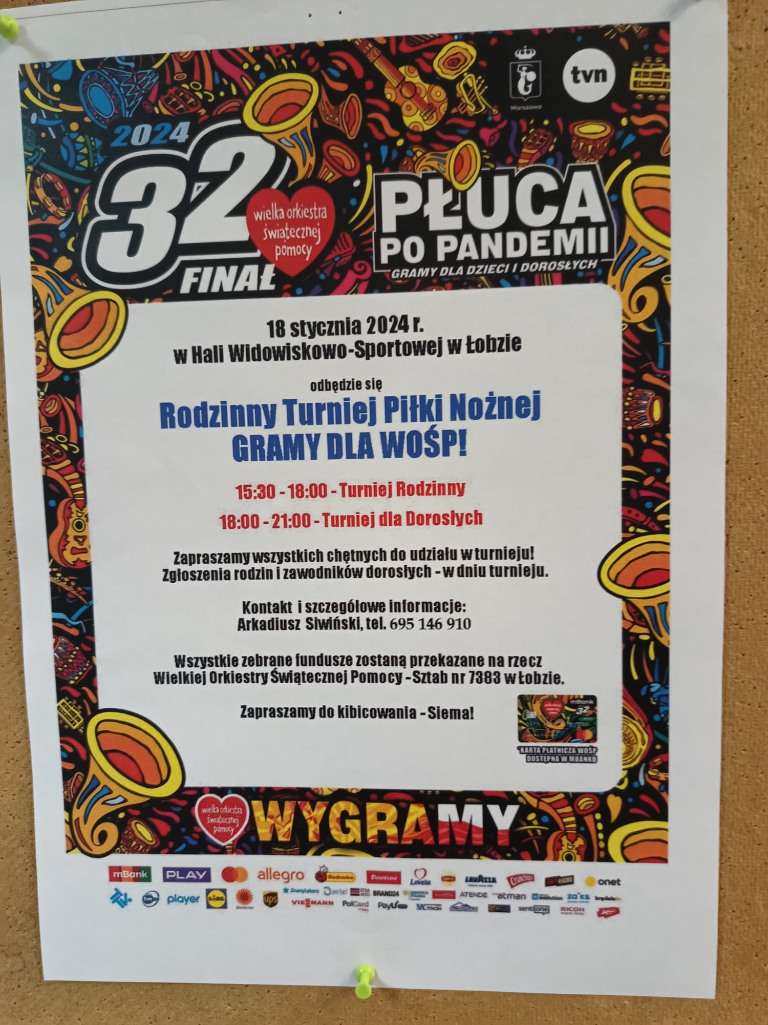 18 stycznia 2024 r. na hali widowiskowo-sportowej w Łobzie odbył się Rodzinny Turniej Piłki Nożnej Gramy dla WOŚP! W turnieju wzięli udział funkcjonariusze z Komendy Powiatowej Państwowej Straży Pożarnej w Świdwinie oraz Komendy Powiatowej Państwowej Straży Pożarnej w Łobzie wraz z rodzinami. Zebrane w ten sposób pieniądze zostały przekazane na rzecz fundacji Wielkiej Orkiestry Świątecznej Pomocy.