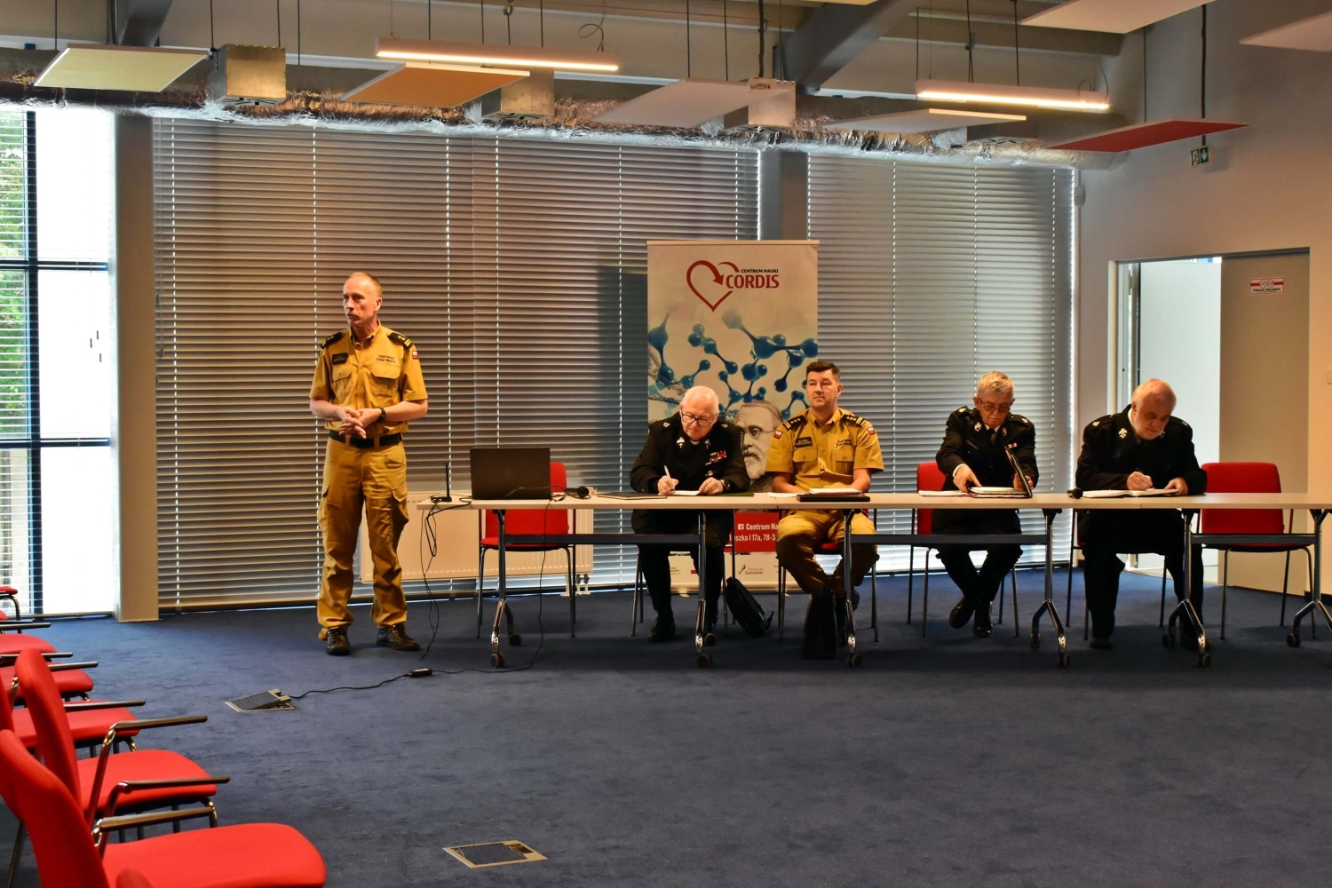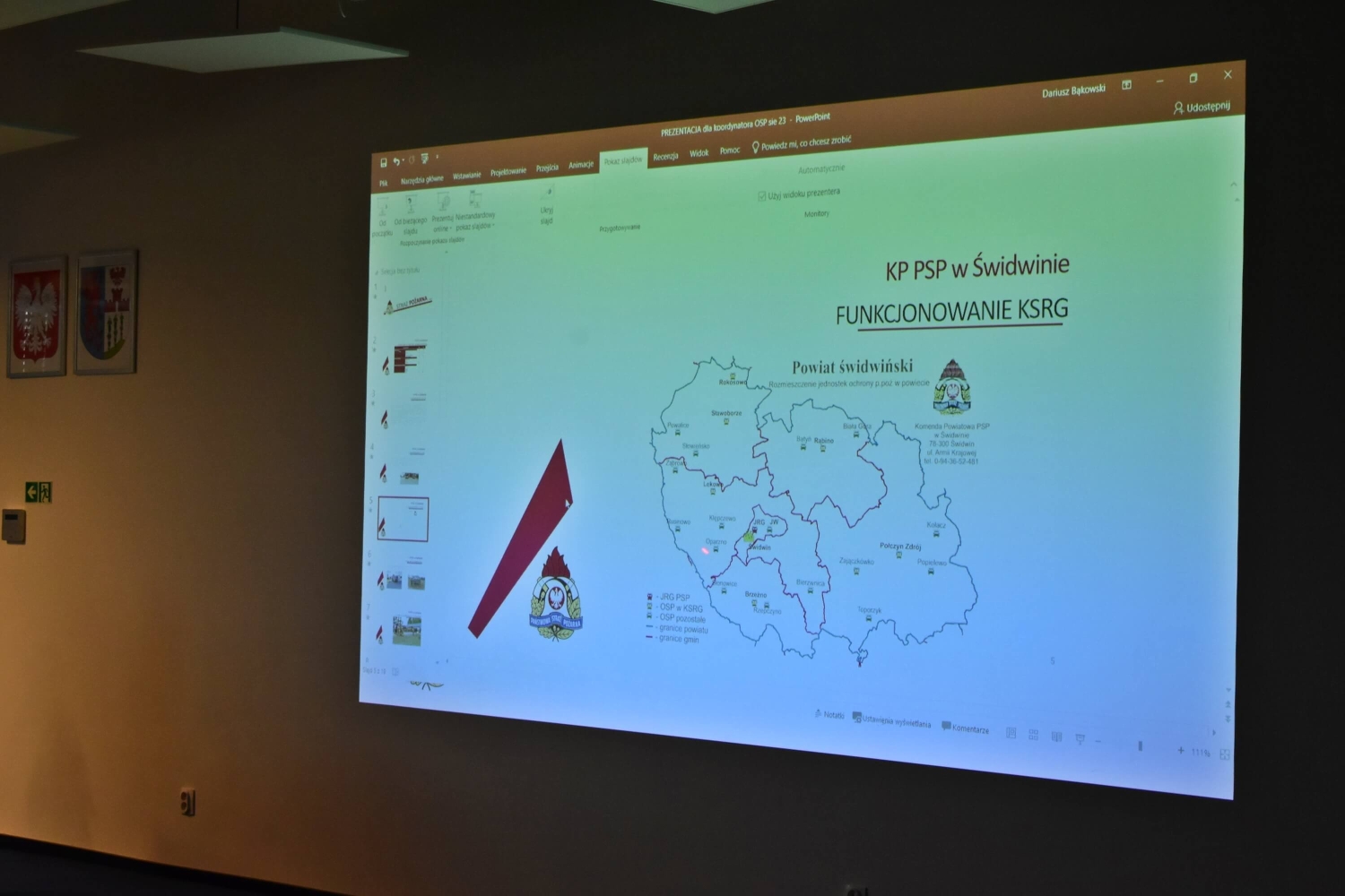 17 sierpnia 2023 r. w sali konferencyjnej Centrum Nauki CORDIS w Świdwinie odbyło się spotkanie Zastępcy Zachodniopomorskiego Komendanta Wojewódzkiego Państwowej Straży Pożarnej st. bryg. Marka Popławskiego – koordynatora wojewódzkiego ds. OSP z Prezesami i Naczelnikami jednostek Ochotniczych Straży Pożarnych z terenu powiatu świdwińskiego.
