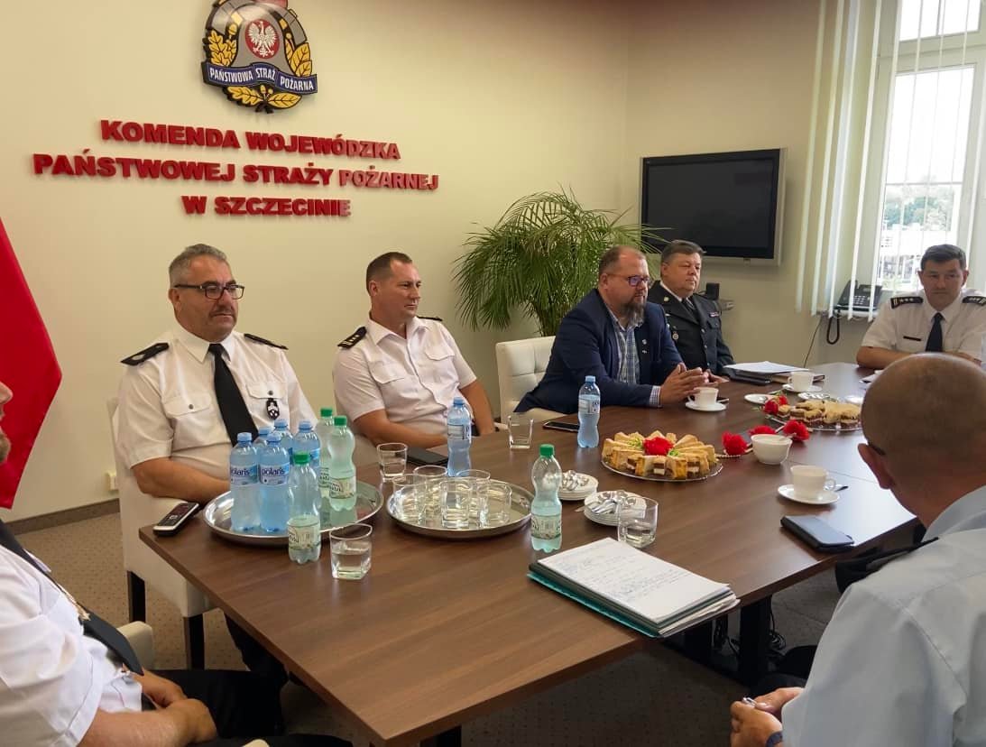 4 lipca 2022 r. w siedzibie Komendy Wojewódzkiej Państwowej Straży Pożarnej w Szczecinie odbyło się spotkanie z Zastępcą Zachodniopomorskiego Komendanta Wojewódzkiego PSP st. bryg. Markiem Popławskim - Koordynator wojewódzki ds. Ochotniczych Straży Pożarnych. Celem spotkania było poruszenie zagadnień wynikających z ustawy o OSP. Nasz powiat reprezentował dh Zdzisław Pawelec - Pezes Związku Ochotniczych Straży Pożarnych RP w Świdwinie oraz asp. Bartłomiej Kozicki – starszy inspektor ds. operacyjno-szkoleniowych. Oprócz przedstawicieli z naszego powiatu w spotkaniu uczestniczyli również komendanci powiatowi PSP i prezesi powiatowi OSP z terenu powiatów: koszalińskiego, białogardzkiego, sławieńskiego oraz szczecineckiego.