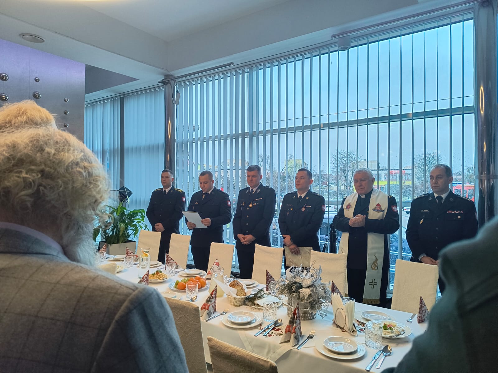 Następnie Kapelan zachodniopomorskich strażaków ks. bryg. Ryszard Szczygieł odmówił modlitwę, po której uczestnicy podzielili się opłatkiem, składając sobie nawzajem życzenia świąteczne.