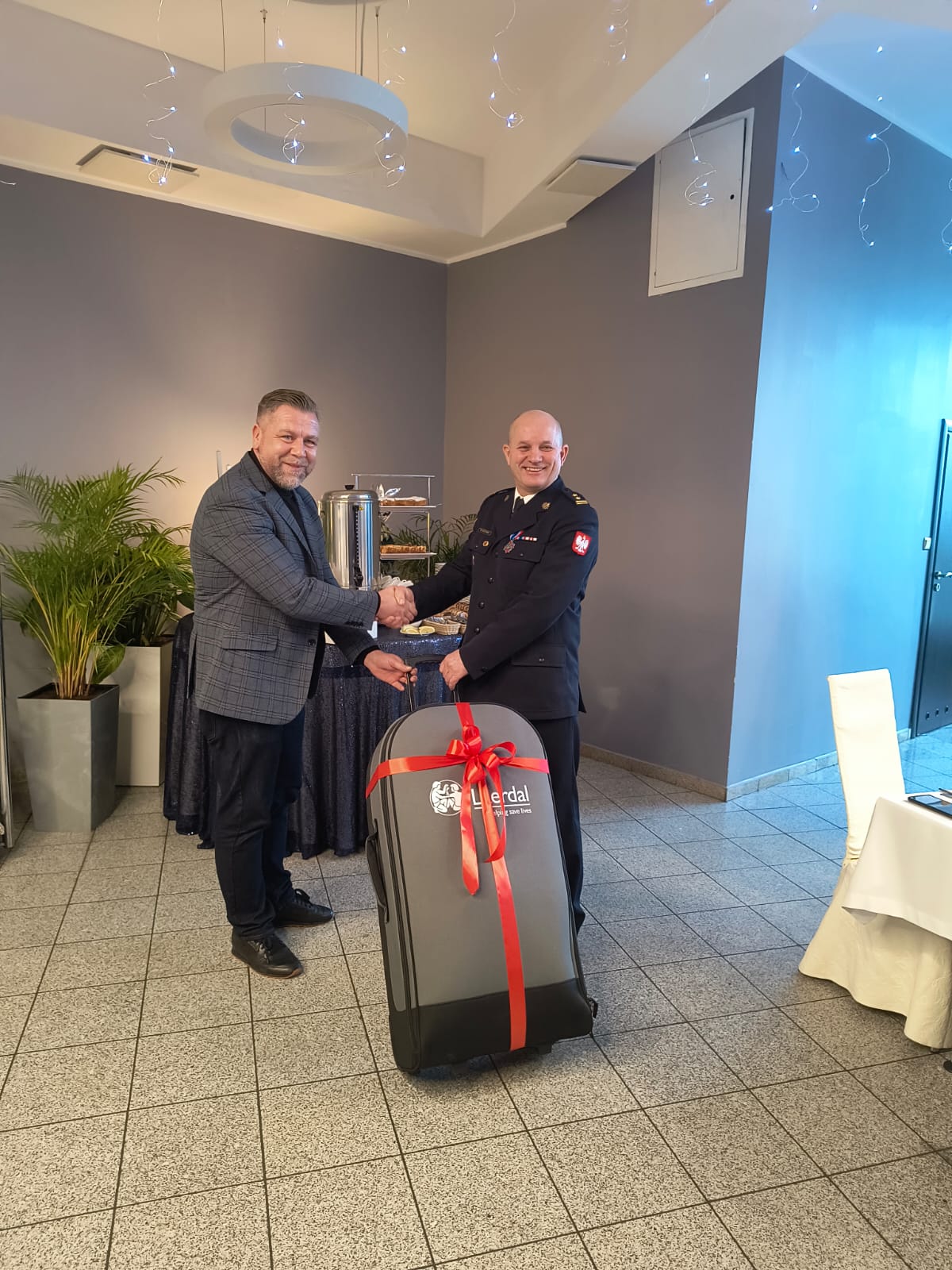 Podczas uroczystości Burmistrz Miasta Świdwin Pan Piotr Feliński przekazał na ręce Komendanta Powiatowego PSP w Świdwinie specjalistycznego fantoma do ćwiczeń. Fantom osoby dorosłej posłuży strażakom do nauki: udrożniania dróg oddechowych metodami bezprzyrządowymi i przyrządowymi, prowadzenia oddechów ratowniczych, ucisków klatki piersiowej, oceny tętna.
