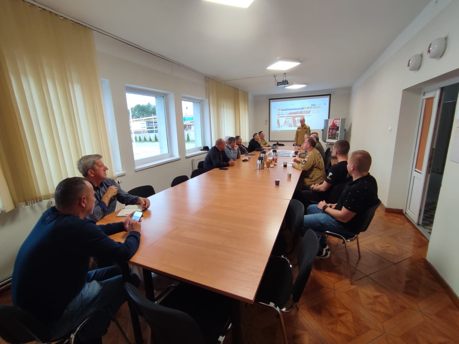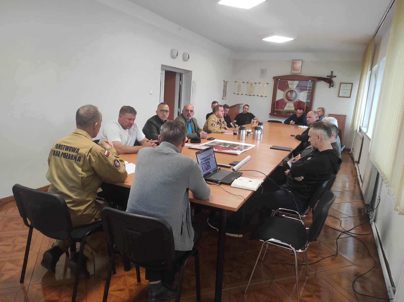 11 października 2023 r. w Komendzie Powiatowej Państwowej Straży Pożarnej w Świdwinie odbyło się spotkanie z udziałem Prezesów oraz Naczelników Ochotniczych Straży Pożarnych powiatu świdwińskiego z bryg. Józefem Brzezińskim - Komendantem Powiatowym Państwowej Straży Pożarnej w Świdwinie oraz mł. kpt. Bartłomiejem Kozickim – Naczelnikiem wydziału ds. operacyjno-szkoleniowych. Celem spotkania było omówienie wielu spraw bieżących między innymi: trwającej akcji „Bitwa o Remizy 2023”, organizacji szkolenia podstawowego OSP, szerokorozumianym BHP w OSP, zbliżających się ćwiczeń powiatowych.