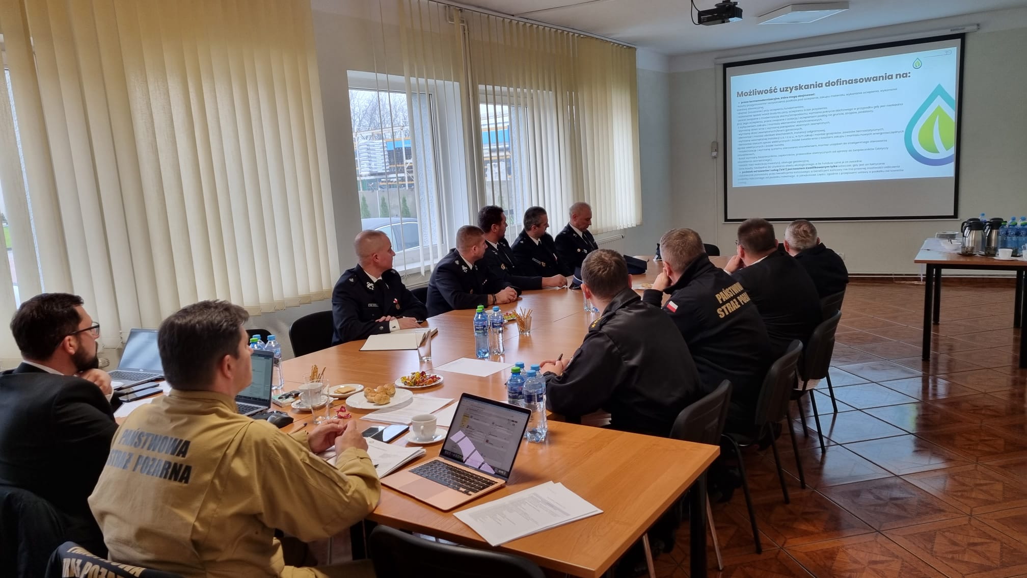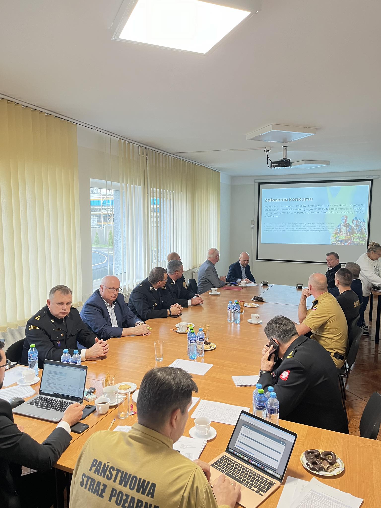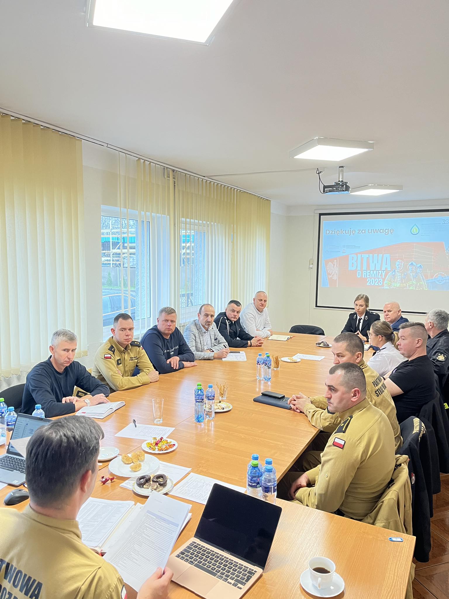 17 listopada 2023 r. w Komendzie Powiatowej Państwowej Straży Pożarnej w Świdwinie odbyło się spotkanie zespołu do wyznaczenia jednostek Ochotniczych Straży Pożarnych na dofinansowanie w spr. „Bitwy o Remizy”, z udziałem Zastępcy Zachodniopomorskiego Komendanta Państwowej Straży Pożarnej st. bryg. Marka Popławskiego, Marka Andrzeja Subocz - Prezesa Wojewódzkiego Funduszu Ochrony Środowiska i Gospodarki Wodnej w Szczecinie oraz Kierownika zespołu ds. obsługi wniosków Pana Andrzeja Grzana w WFOSiGW w Szczecinie. W spotkaniu uczestniczyy delegację z Gmin: Miasto Świdwin, Wałcz, Kołobrzeg, Borne Sulinowo, Mielno, Darłowo, Tychowo, Drwasko Pomorskie.