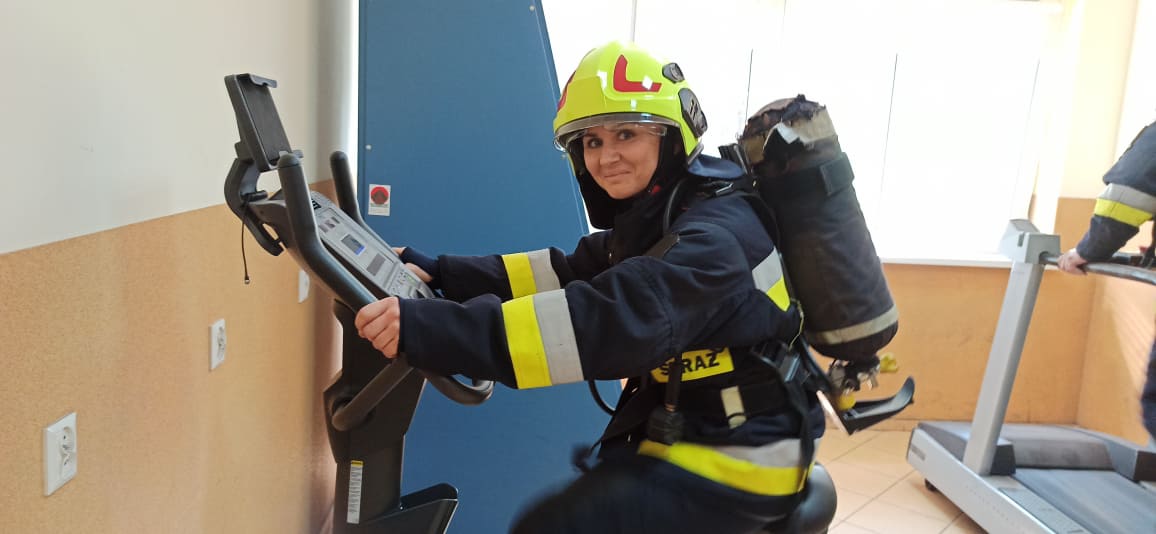 - pracy przy dużym obciążeniu psychofizycznym wynikającym z warunków działań ratowniczych (ograniczenie lub brak widoczności spowodowane zadymieniem, zaciemnieniem, ograniczenie przestrzeni itp.),
