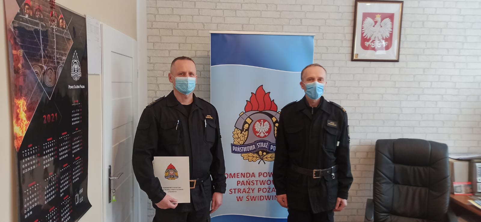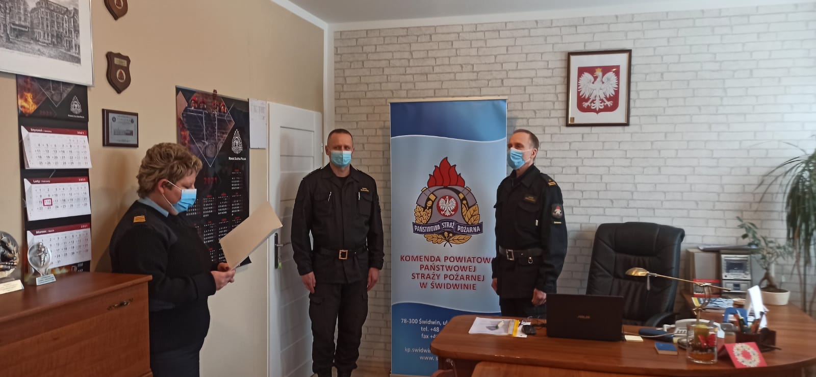Wręczenia nagrody jubileuszowej dokonał Komendant Powiatowy Państwowej Straży Pożarnej w Świdwinie mł. bryg. mgr inż. Józef Brzeziński w asyście Zastępcy Komendanta Powiatowego PSP w Świdwinie mł. bryg. mgr inż. Mirosława Niezgody . Naszemu koledze kpt. Rafałowi Kurlapskiemu gratulujemy oraz życzymy sukcesów w służbie, spełnienia marzeń i oczywiście kolejnych długich lat w szeregach Państwowej Straży Pożarnej.