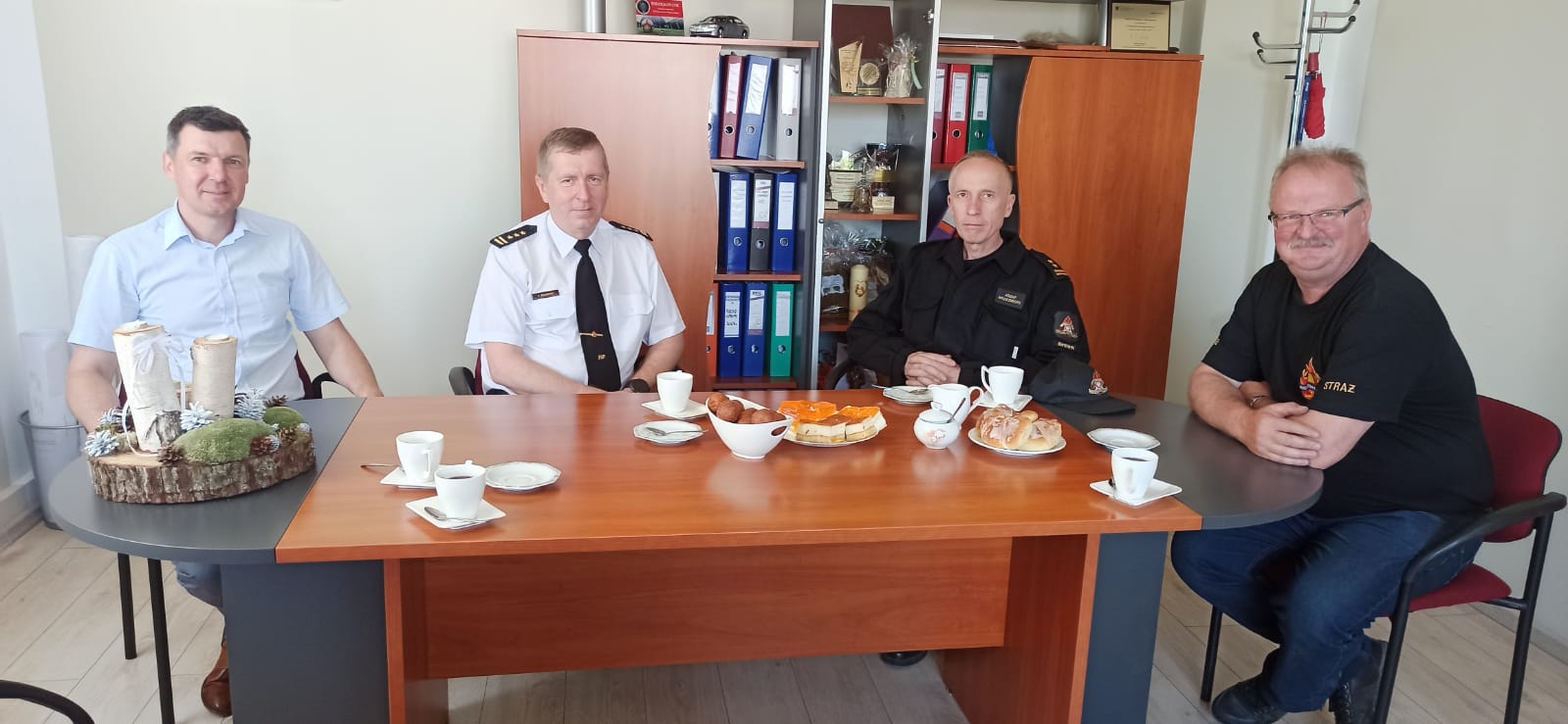 9 czerwca 2021 r. w siedzibie Gminy Sławoborze odbyło się spotkanie z udziałem: Pana Marcina Książek - gospodarza spotkania Wójt Gminy Sławoborze, dh Waldemara Giniewskiego – Prezesa Ochotniczej Straży Pożarnej w Sławoborzu, st. bryg. Krzysztofa Makowskiego – Komendanta Powiatowego Państwowej Straży Pożarnej w Kołobrzegu, st. kpt. Krzysztofa Azierskiego – Dowódcy Jednostki Ratowniczo-Gaśniczej w Kołobrzegu, bryg. Józefa Brzezińskiego - Komendanta Powiatowego Państwowej Straży Pożarnej w Świdwinie, mł. asp. Bartłomieja Kozickiego – Starszego inspektora ds. operacyjno-szkoleniowych. Celem spotkania były uzgodnienia operacyjne dotyczące wspólnych obszarów chronionych oraz uzgodnienia ćwiczenia zgrywających powiaty kołobrzeski oraz świdwiński. Inicjatywa ta ma na celu również przećwiczenie współpracy między sąsiadującymi gminami z powiatu kołobrzeskiego oraz świdwińskiego.