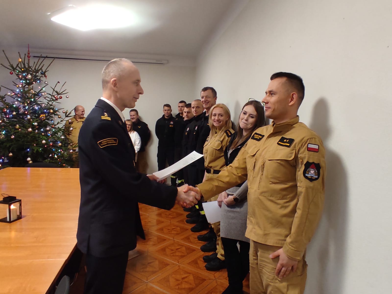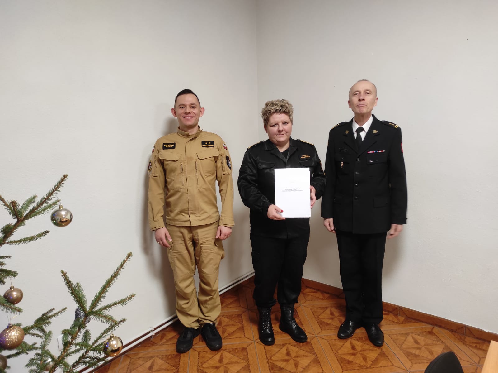Komendant Powiatowy Państwowej Straży Pożarnej w Świdwinie brygadier Józef Brzeziński wręczył nagrodę Komendanta Głównego Państwowej Straży Pożarnej ogn. Agacie Rakowskiej oraz nagrodę Zachodniopomorskiego Komendanta Wojewódzkiego PSP dla: mł. kpt. Przemysława Orenczaka oraz mł. kpt. Bartłomieja Kozickiego.