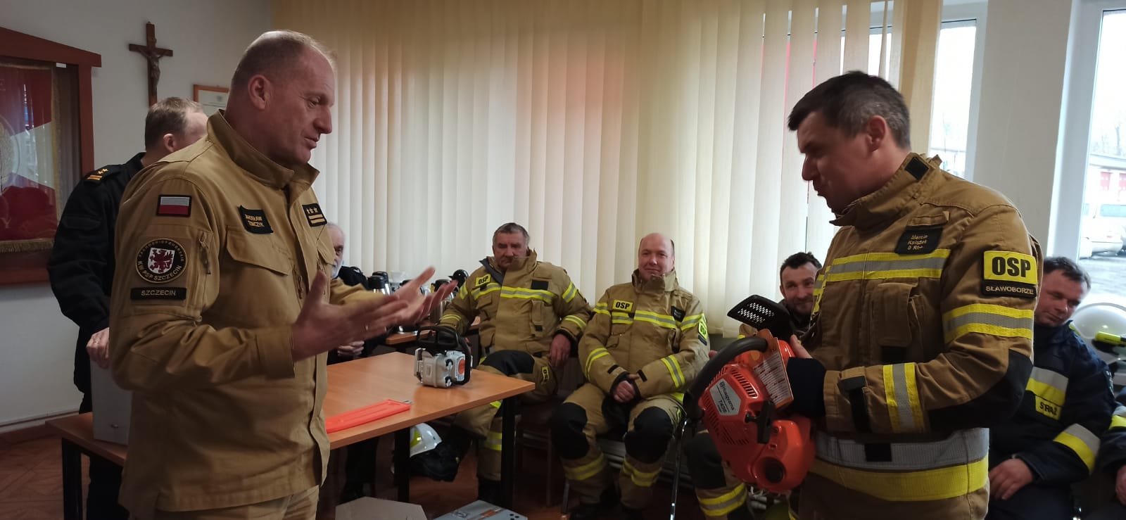 Wręczenie pilarek jednostkom OSP powiatu świdwińskiego