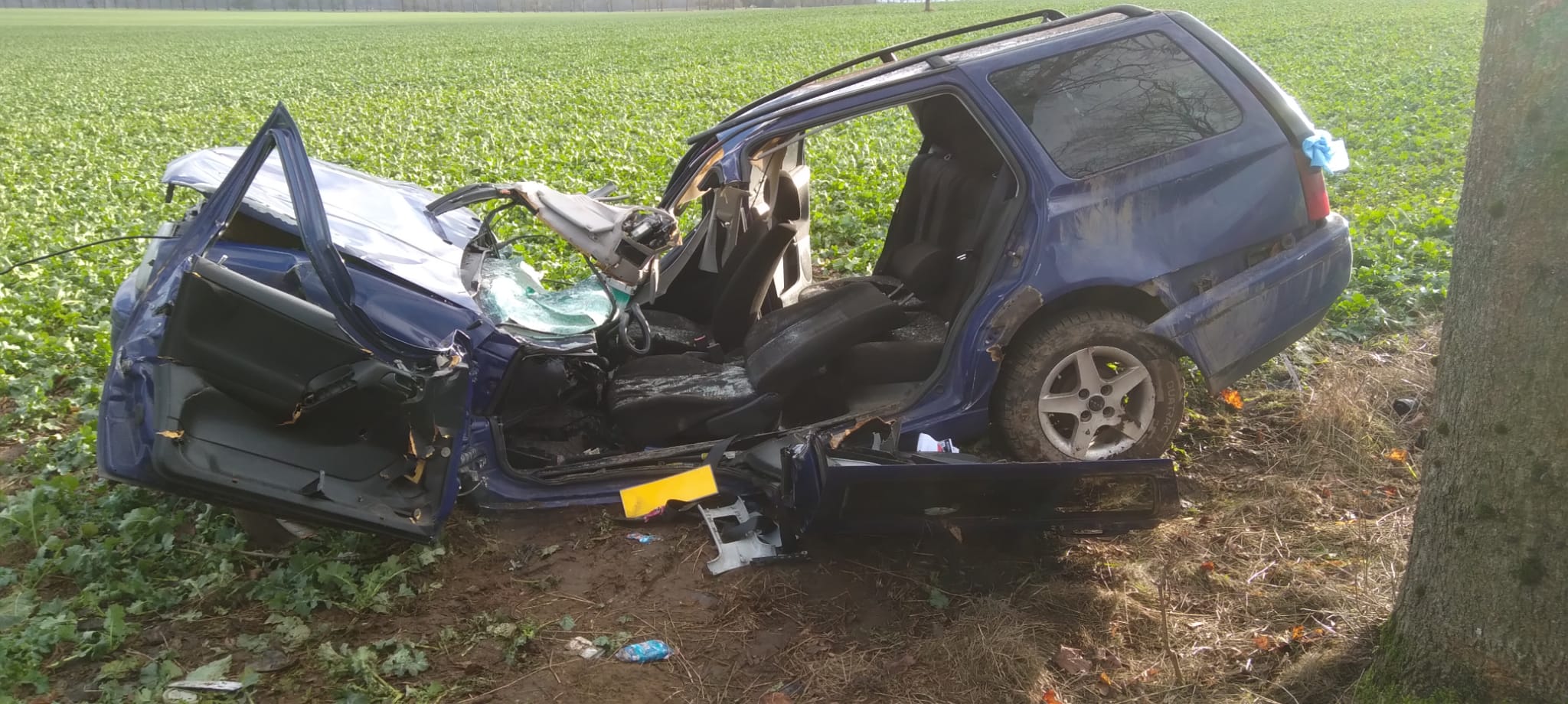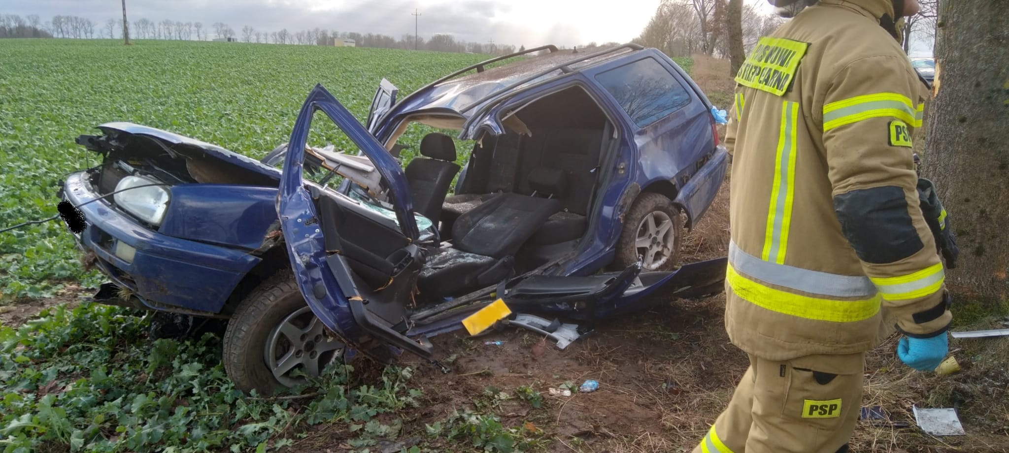 Po przyjeździe na miejsce zdarzenia straży pożarnej okazało się, że samochód osobowy uderzył w drzewo i znajduje się na polu rzepaku. Pojazdem podróżował kobieta, która była zakleszczona.