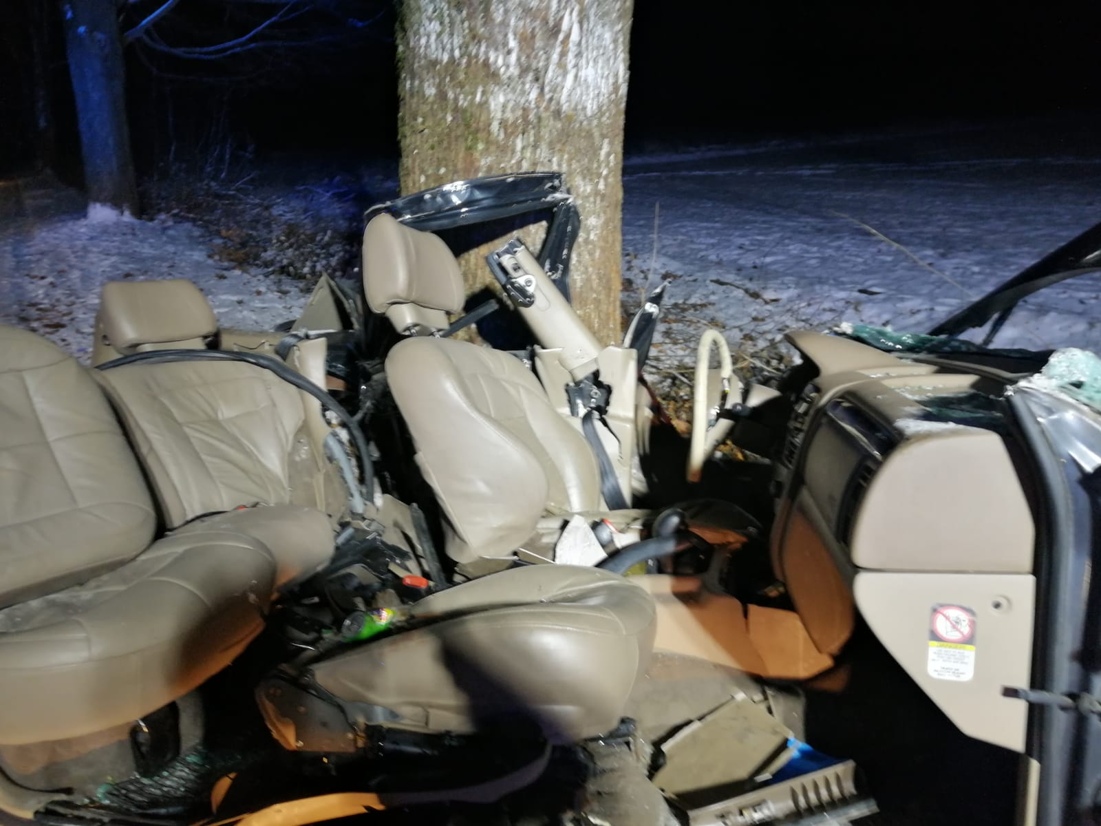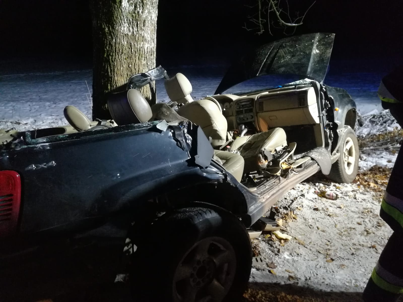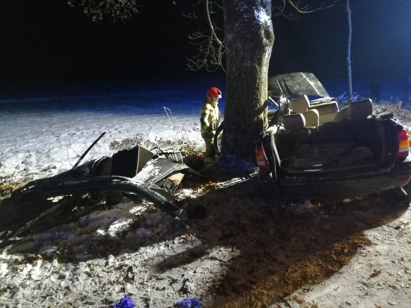 Po przyjeździe na miejsce zdarzenia pierwszych zastępów straży pożarnej okazało się, że samochód osobowy uderzył bokiem w drzewo. Pojazdem podróżowały trzy osoby, które były zakleszczone.