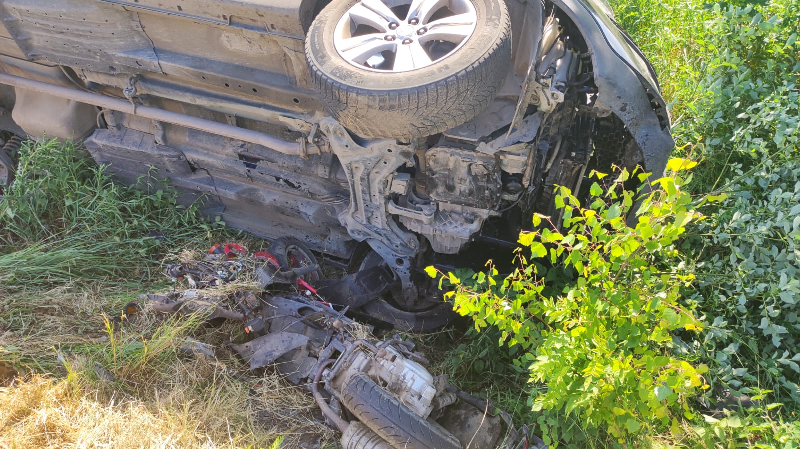 Po przyjeździe na miejsce zdarzenia straży pożarnej zastano samochód osobowy oraz skuter w przydrożnym rowie. Kierowca samochodu osobowego znajdował się poza pojazdem przytomny, natomiast kierujący skuterem był nieprzytomny.