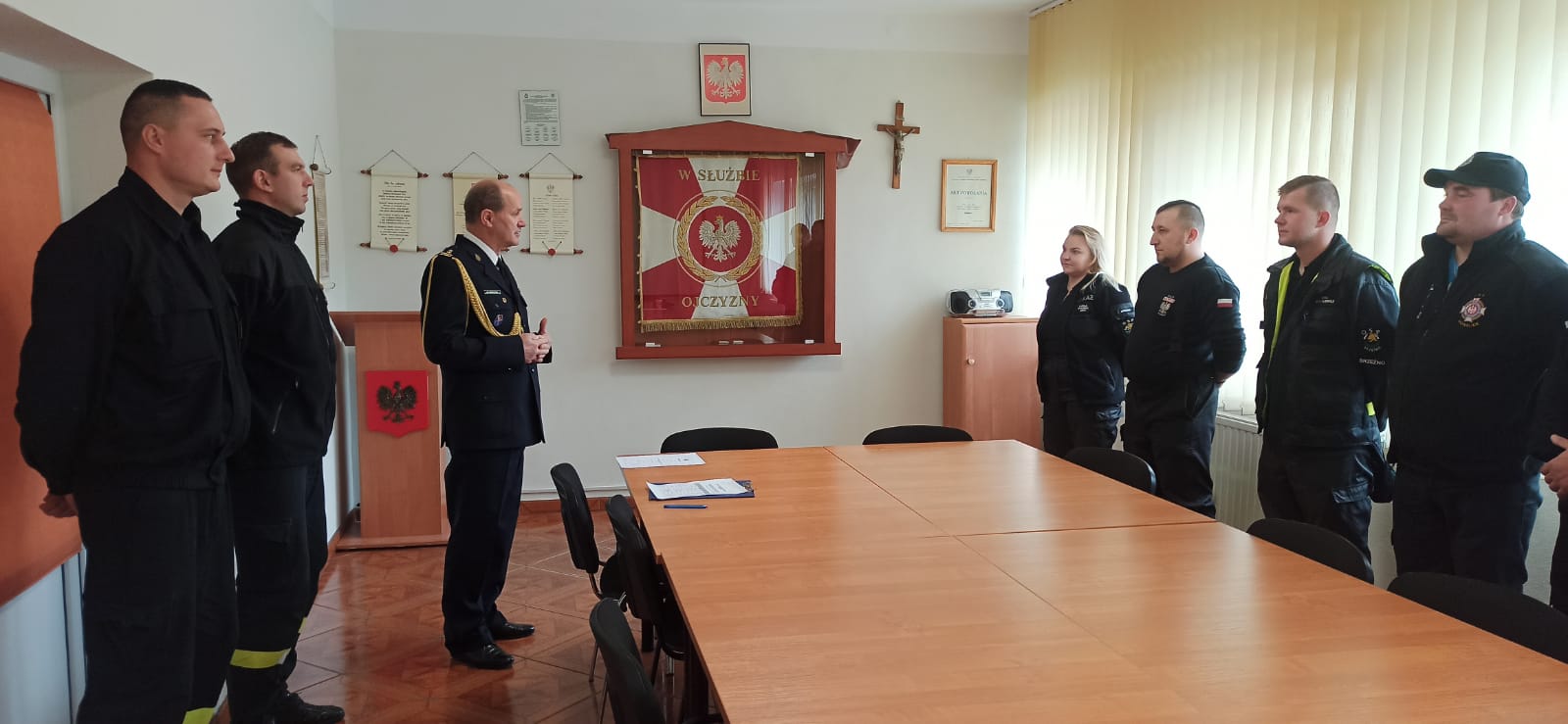 Świadectwa świeżo upieczonym Dowódcom wręczył Zastępca Komendanta Powiatowego Państwowej Straży Pożarnej w Świdwinie bryg. mgr inż. Mirosław Niezgoda.