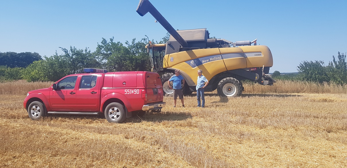 Dobrą praktyką podczas żniw jest zabezpieczenie w postaci ciągnika rozlicznego z pługiem lub agregatem, dzięki któremu w przypadku wystąpienia pożaru płodów rolnych można wykonać pas przeciwpożarowy uniemożliwiający rozprzestrzenianie się ognia.