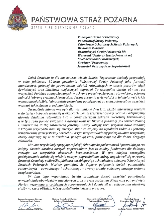 Życzenia z okazji Dnia Strażaka Komendanta Głównego Państwowej Straży PożarnejZyczenia_KG_PSP_2022.pdf 0.10MB