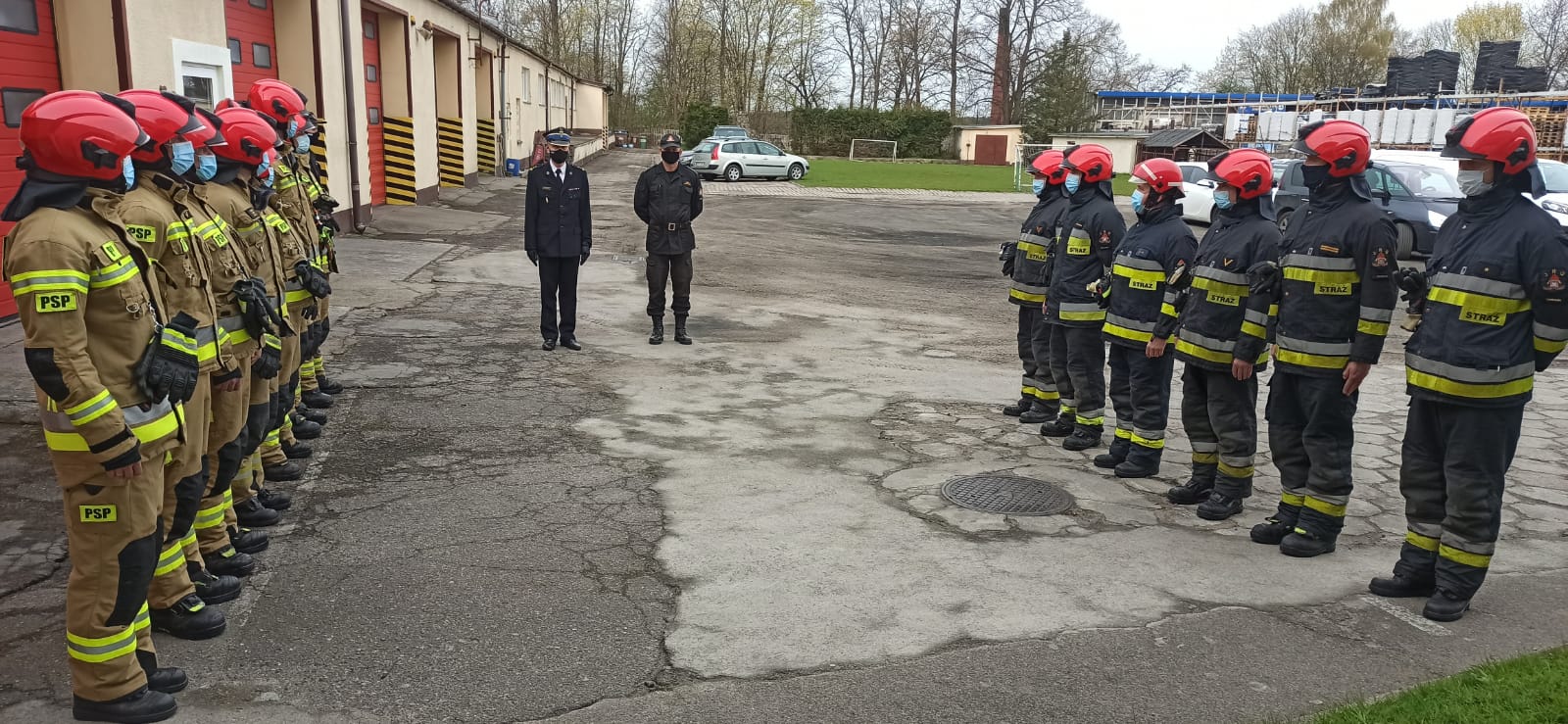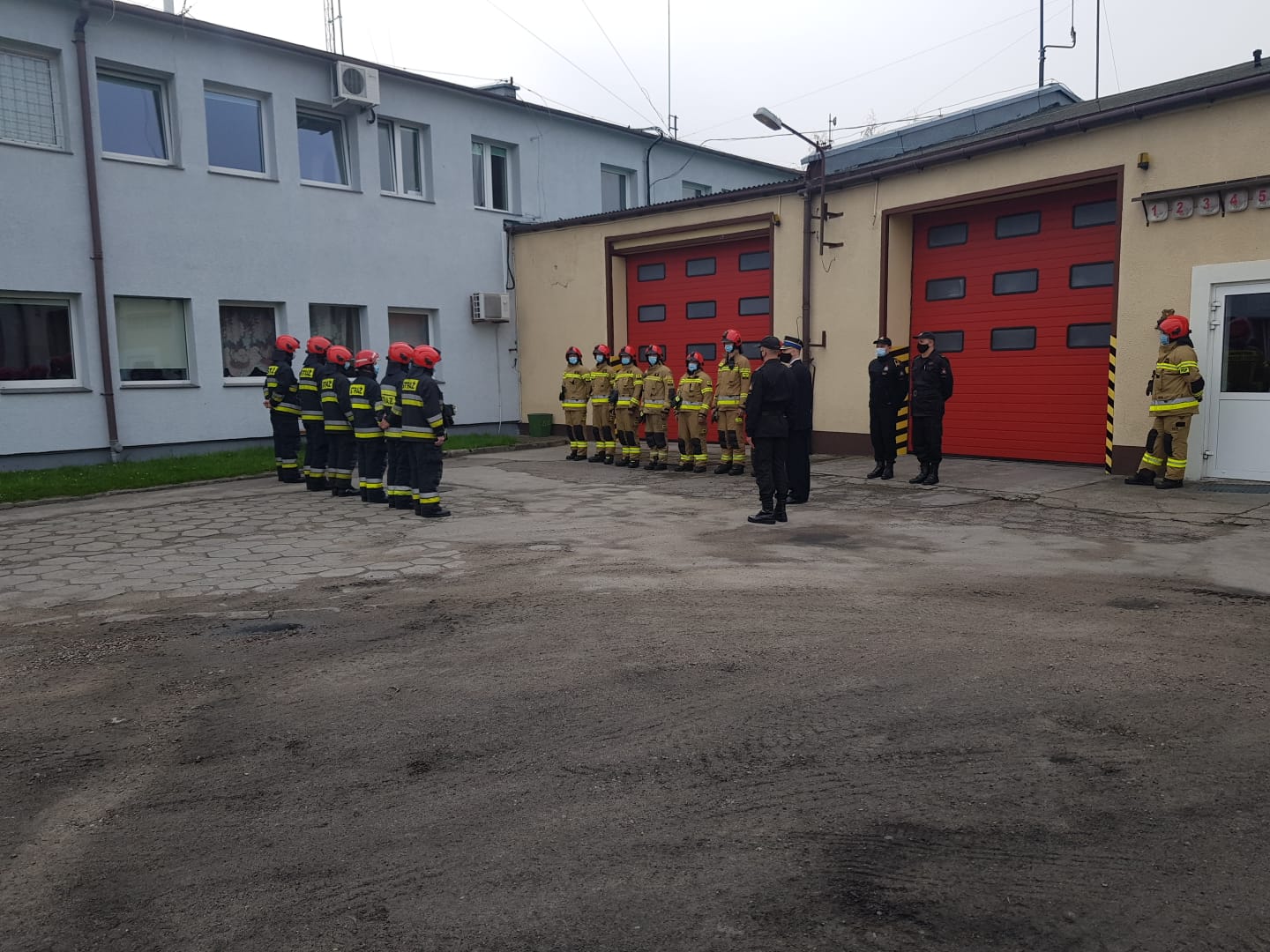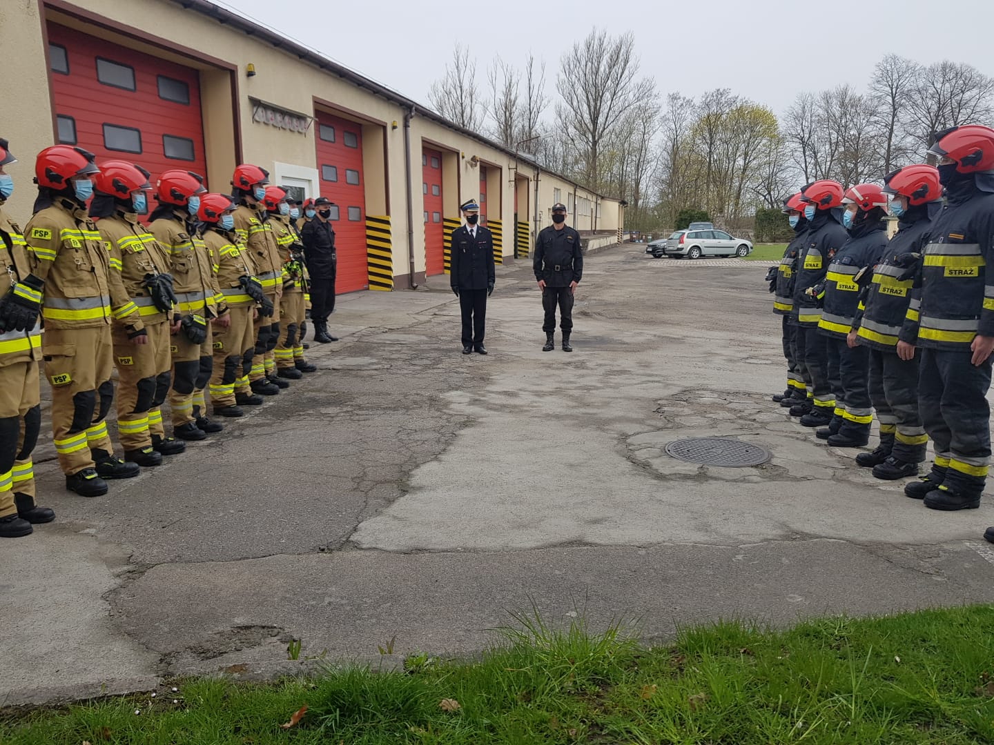 4 maja 2021 r. podczas uroczystej zmiany służby Komendant Powiatowy Państwowej Straży Pożarnej w Świdwinie bryg. mgr inż. Józef Brzeziński wraz ze swoim zastępcą bryg. mgr inż. Mirosławem Niezgodą w asyście Zastępcy dowódcy Jednostki Ratowniczo-Gaśniczej w Świdwinie st. kpt. Rafałem Kurlapskim złożyli załodze najserdeczniejsze życzenia z okazji dnia strażaka.