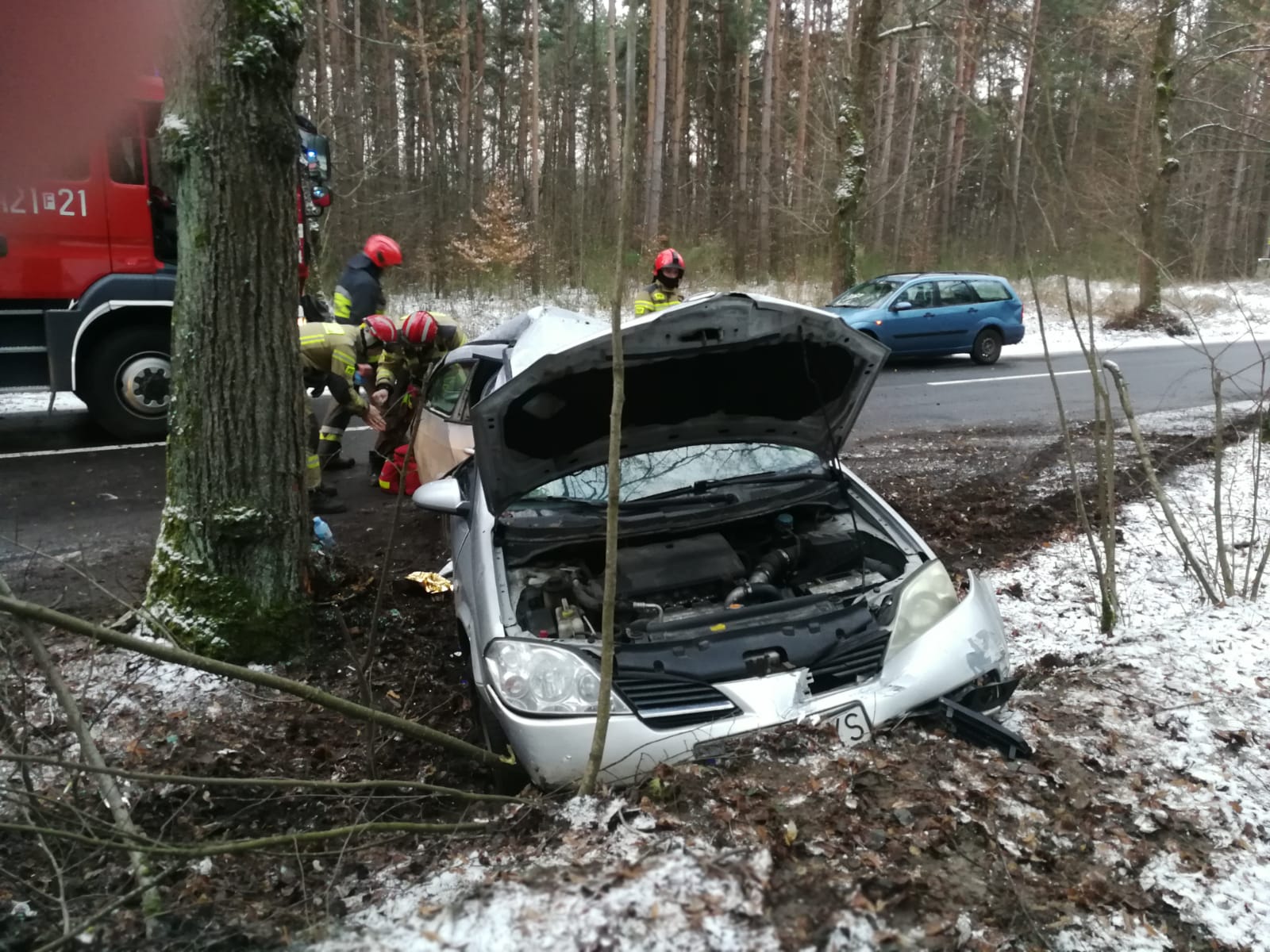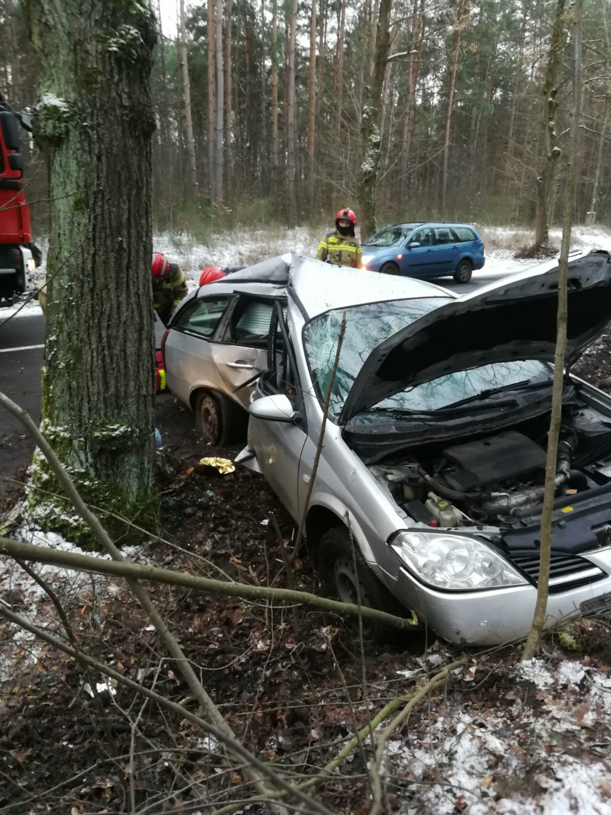 Cibórz. Samochód osobowy uderzył w drzewo.