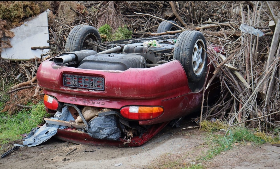 - epizod trzeci – w wyniku niedostosowania odpowiedniej prędkości jazdy do warunków panujących na drodze, kierujący nie opanował pojazdu i doprowadził go do przewrócenia na lewy bok.