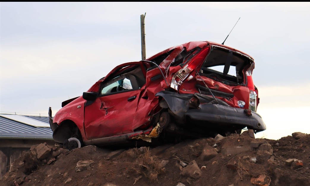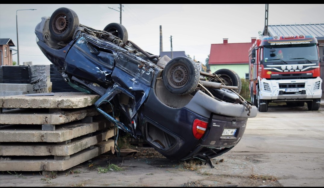 - epizod czwarty - na łuku drogi kierujący samochodem osobowym wypadł z drogi doprowadzając do dachowania.