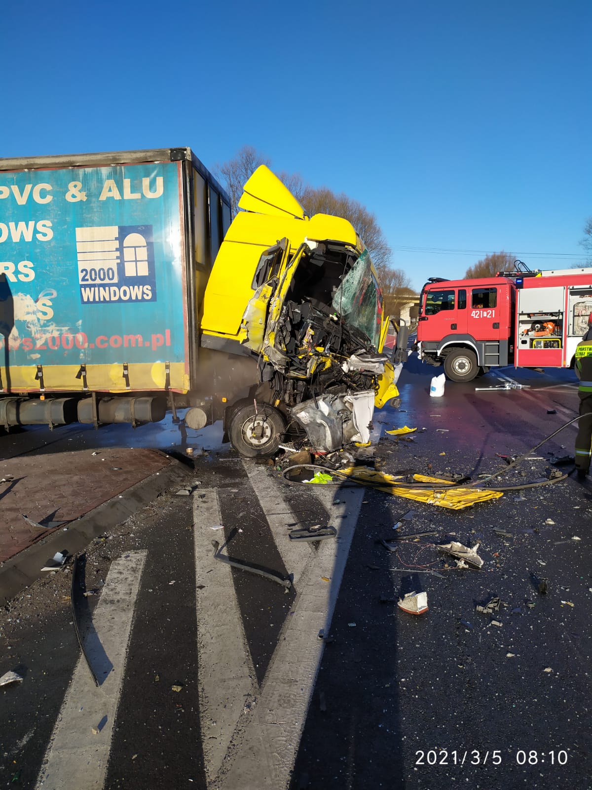 W dniu 5 marca 2021 r. do Stanowiska Kierowania Komendanta Powiatowego wpłynęło zgłoszenie dotyczące zderzenia dwóch samochodów ciężarowych. Do zdarzenia zostały zadysponowane zastępy z Jednostki Ratowniczo-Gaśniczej w Świebodzinie.