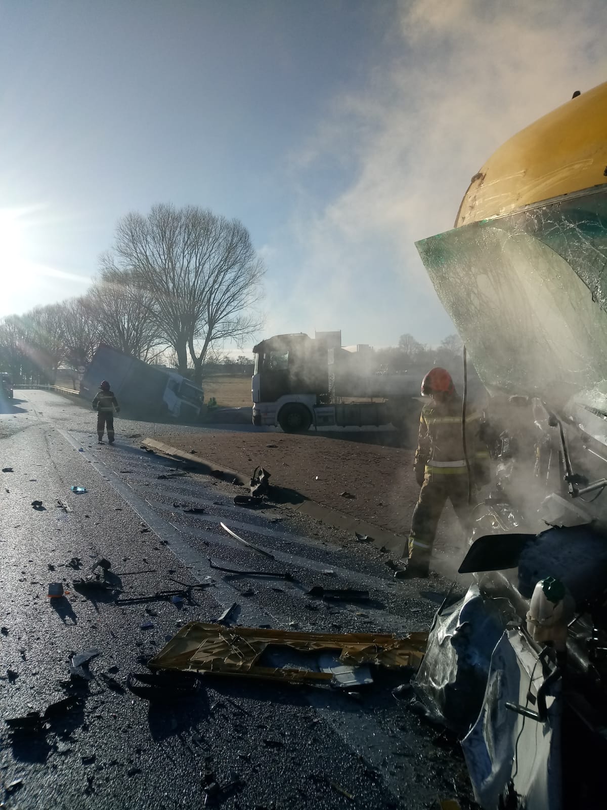 DK 92. Zderzenie dwóch samochodów ciężarowych.