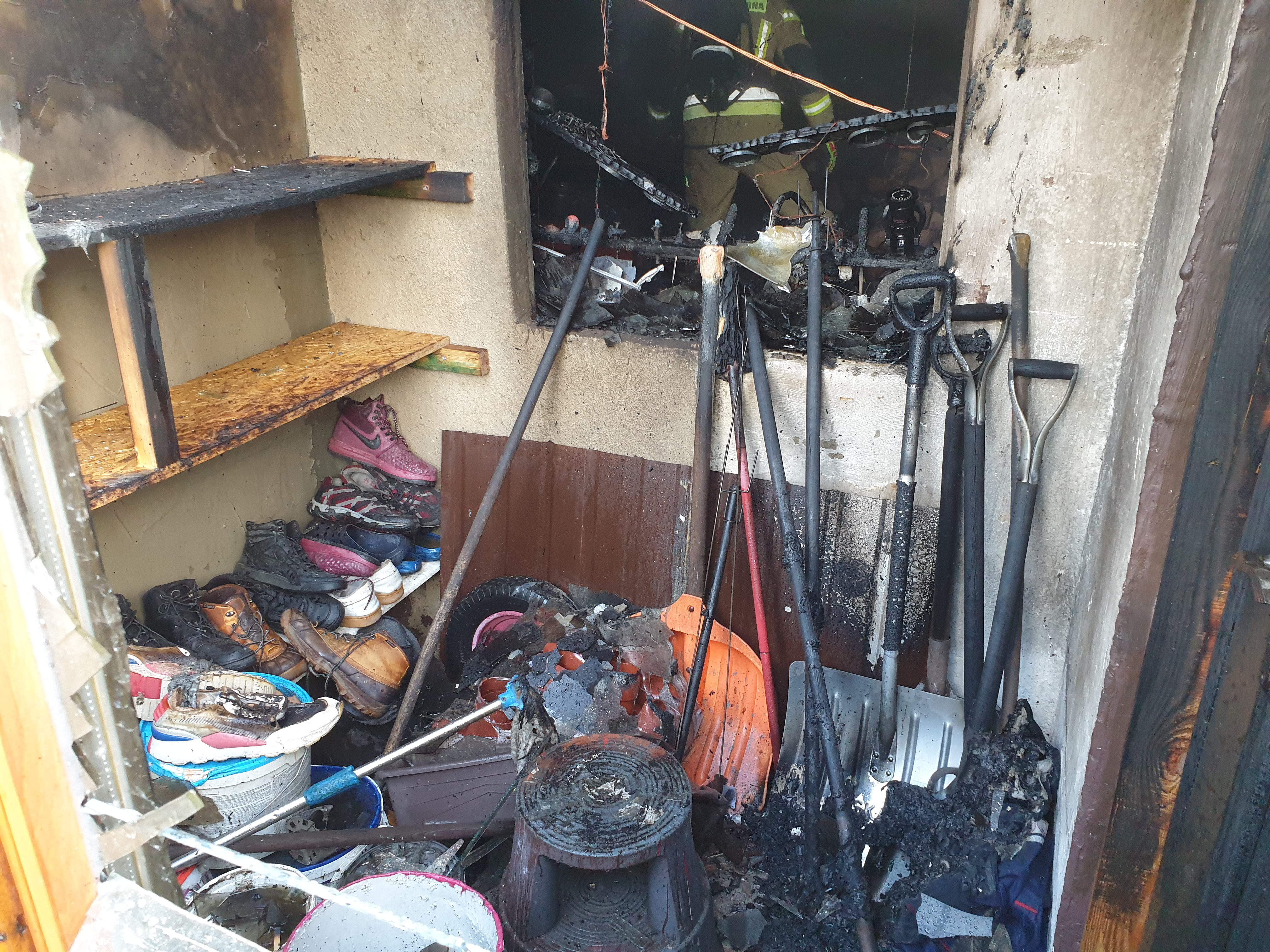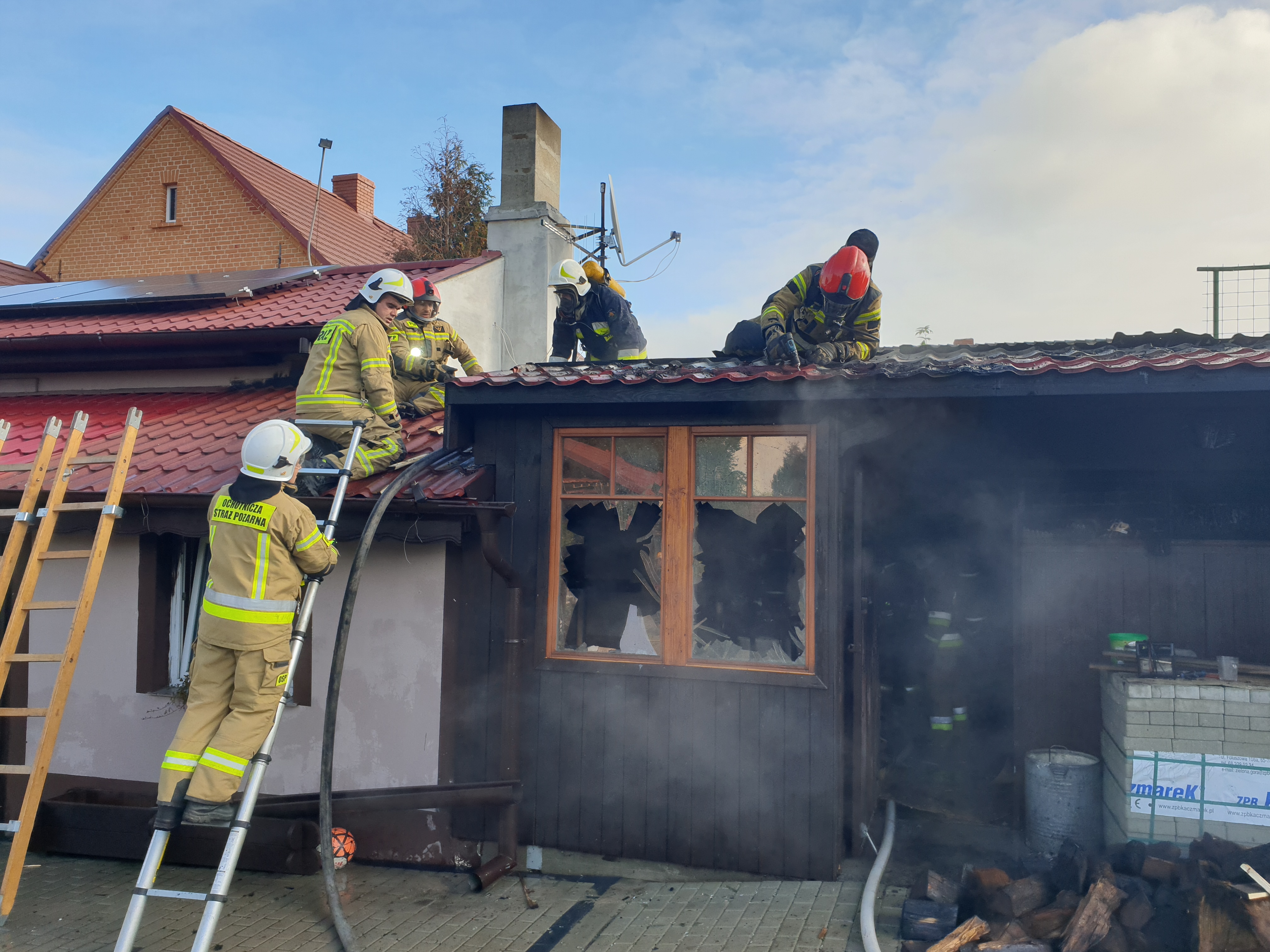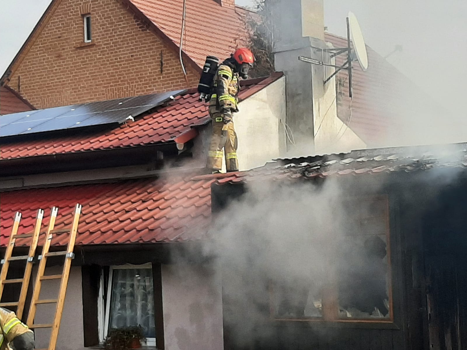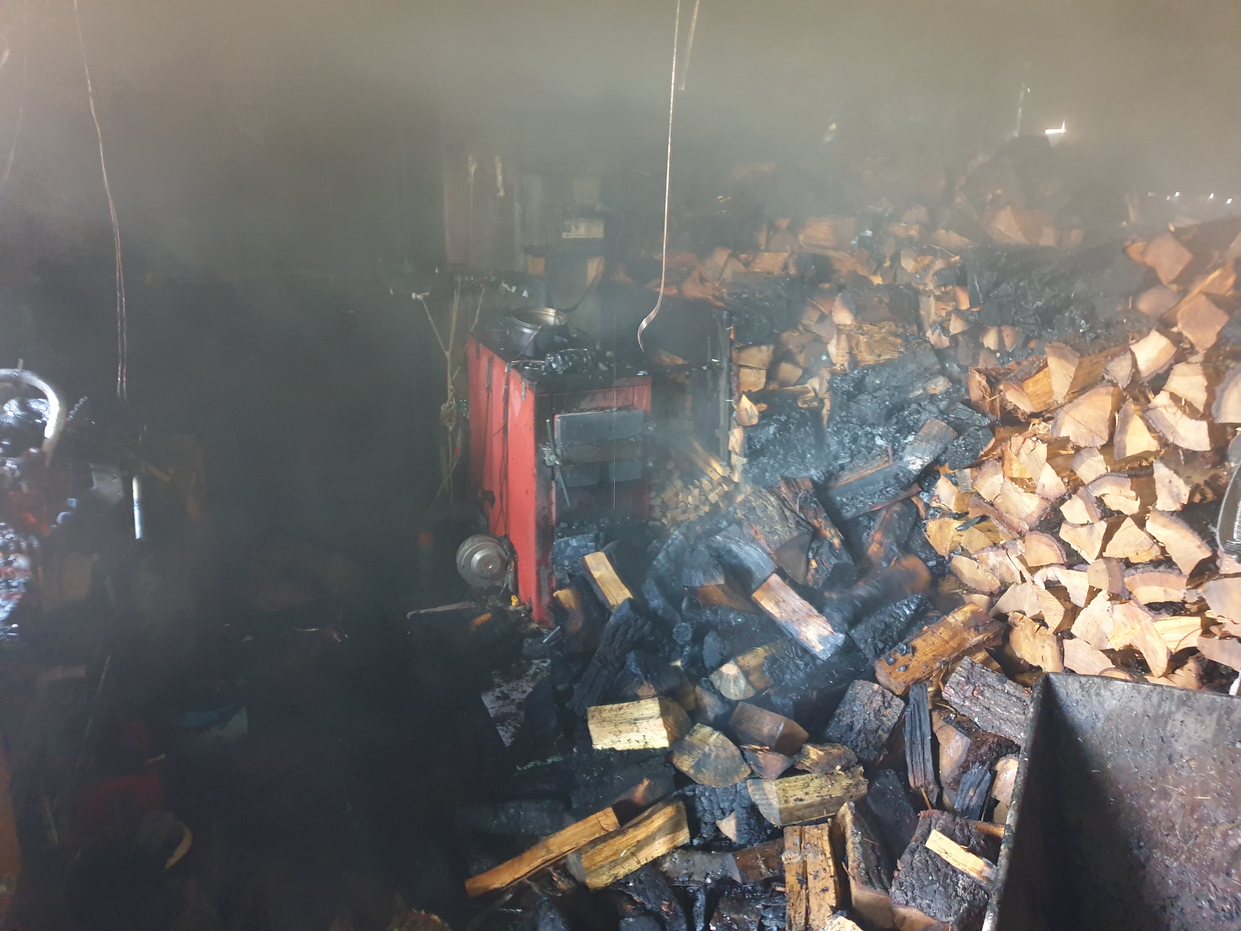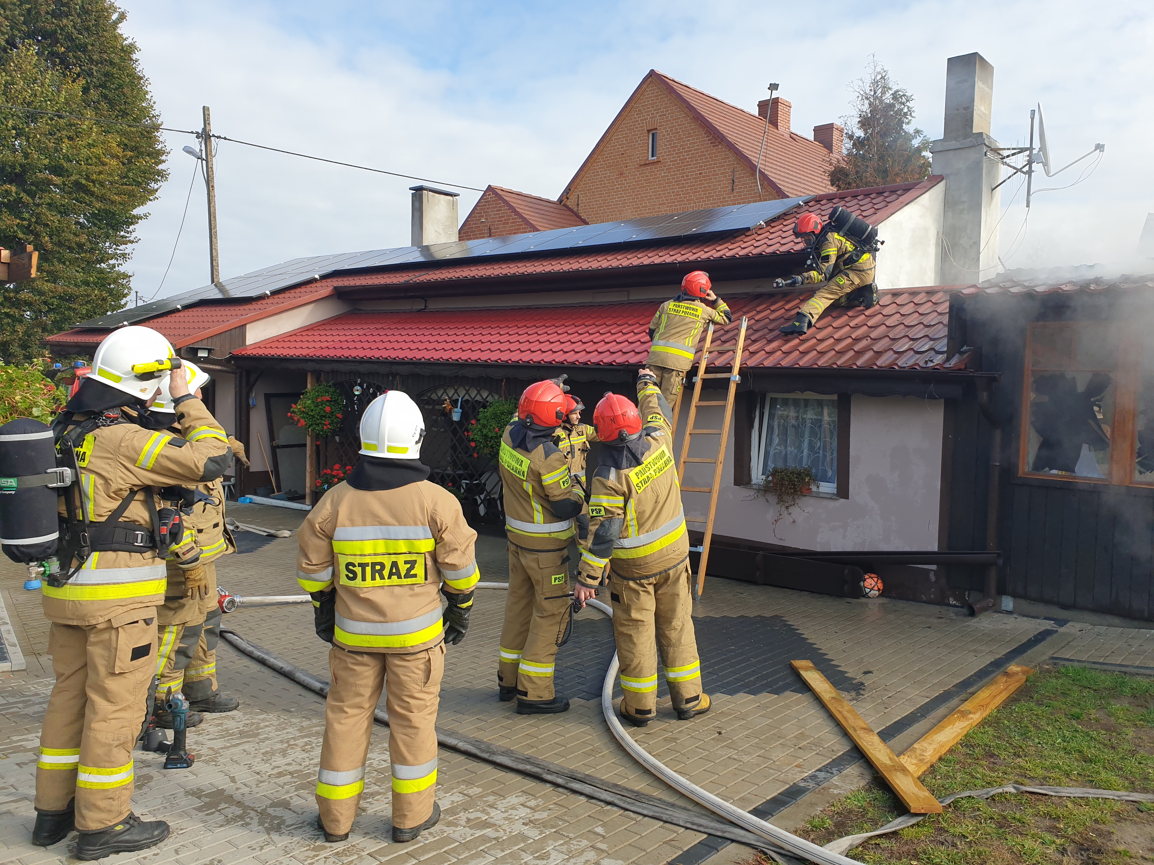 Po dojeździe na miejsce zdarzenia stwierdzono, że pożarem całkowicie objęta jest część gospodarcza budynku, w którym znajdował się piec co, a pożar bezpośrednio zagraża pomieszczeniom mieszkalnym obiektu oraz przylegającemu budynkowi świetlicy wiejskiej.