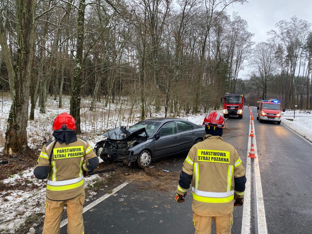 W dniu 7 stycznia 2021 r. do Stanowiska Kierowania Komendanta Powiatowego w Świebodzinie wpłynęło zgłoszenie dotyczące wypadku samochodu osobowego na drodze Jeziory-Smardzewo. Do zdarzenia zostały zadysponowane zastępy z Jednostki Ratowniczo-Gaśniczej w Świebodzinie.
