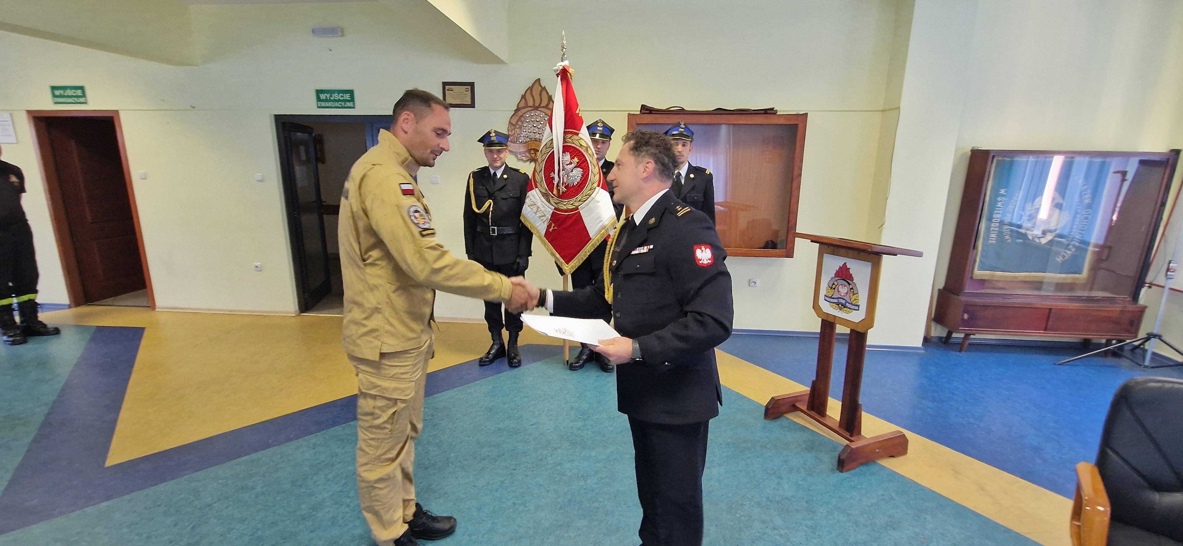 3 września w Komendzie Powiatowej PSP w Świebodzinie podczas uroczystej zbiórki Komendant Powiatowy PSP bryg. Mariusz Wójcik złożył podziękowania i gratulacje dla funkcjonariusza świebodzińskiej komendy z okazji jubileuszu 20 lat pracy zawodowej st.kpt. Piotra Pietrzaka – dowódcy zmiany świebodzińskiej jednostki. Zarówno Komendant jak i funkcjonariusze komendy gratulowali jubileuszu oraz składali podziękowania za lata służby życząc dalszych sukcesów i wytrwałości w pracy zawodowej, wiele zadowolenia płynącego z poczucia dobrze wypełnionej pracy oraz zdrowia i pomyślności w życiu osobistym..