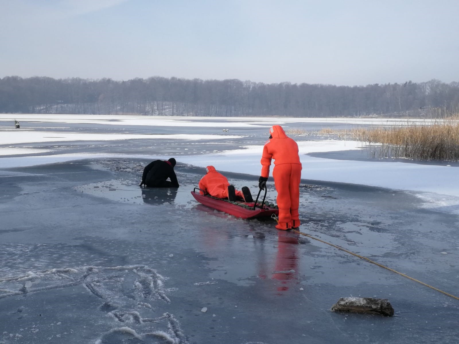 - przypomnienie zasad użycia sprzętu podczas prowadzenia akcji ratowniczej na zamarzniętym akwenie,