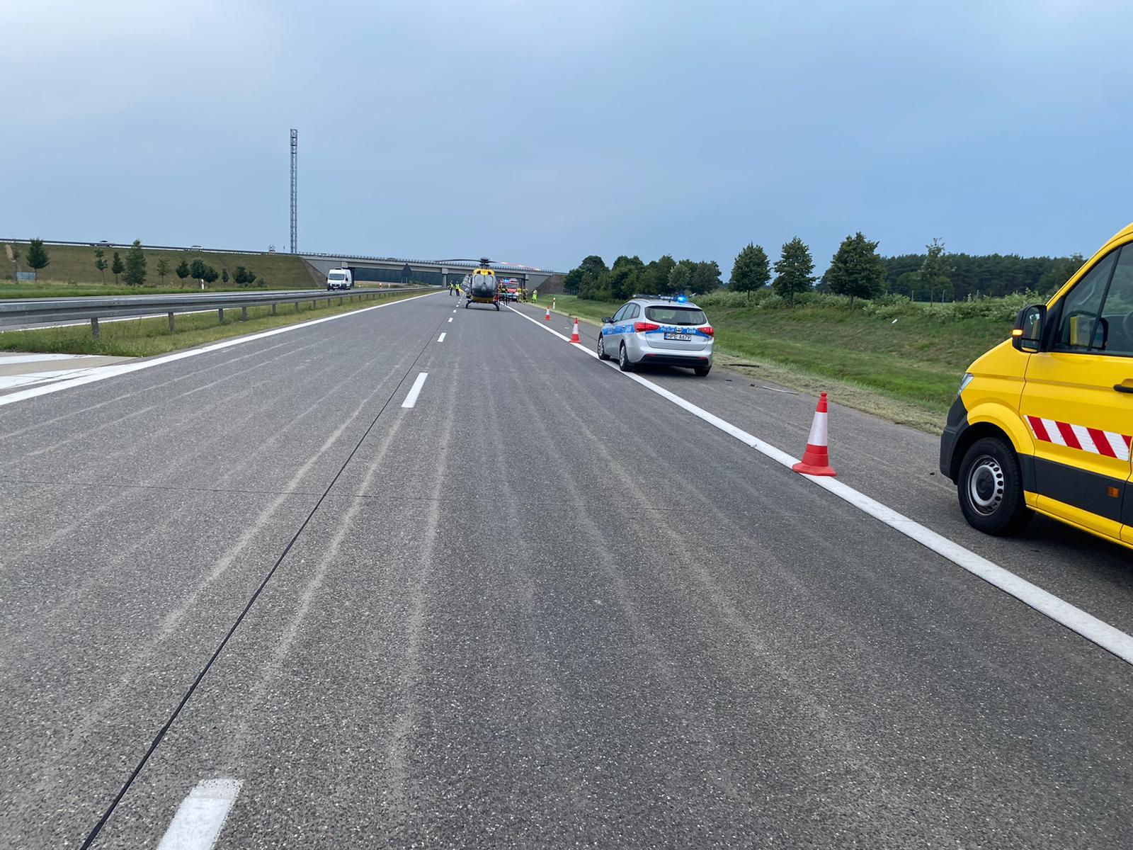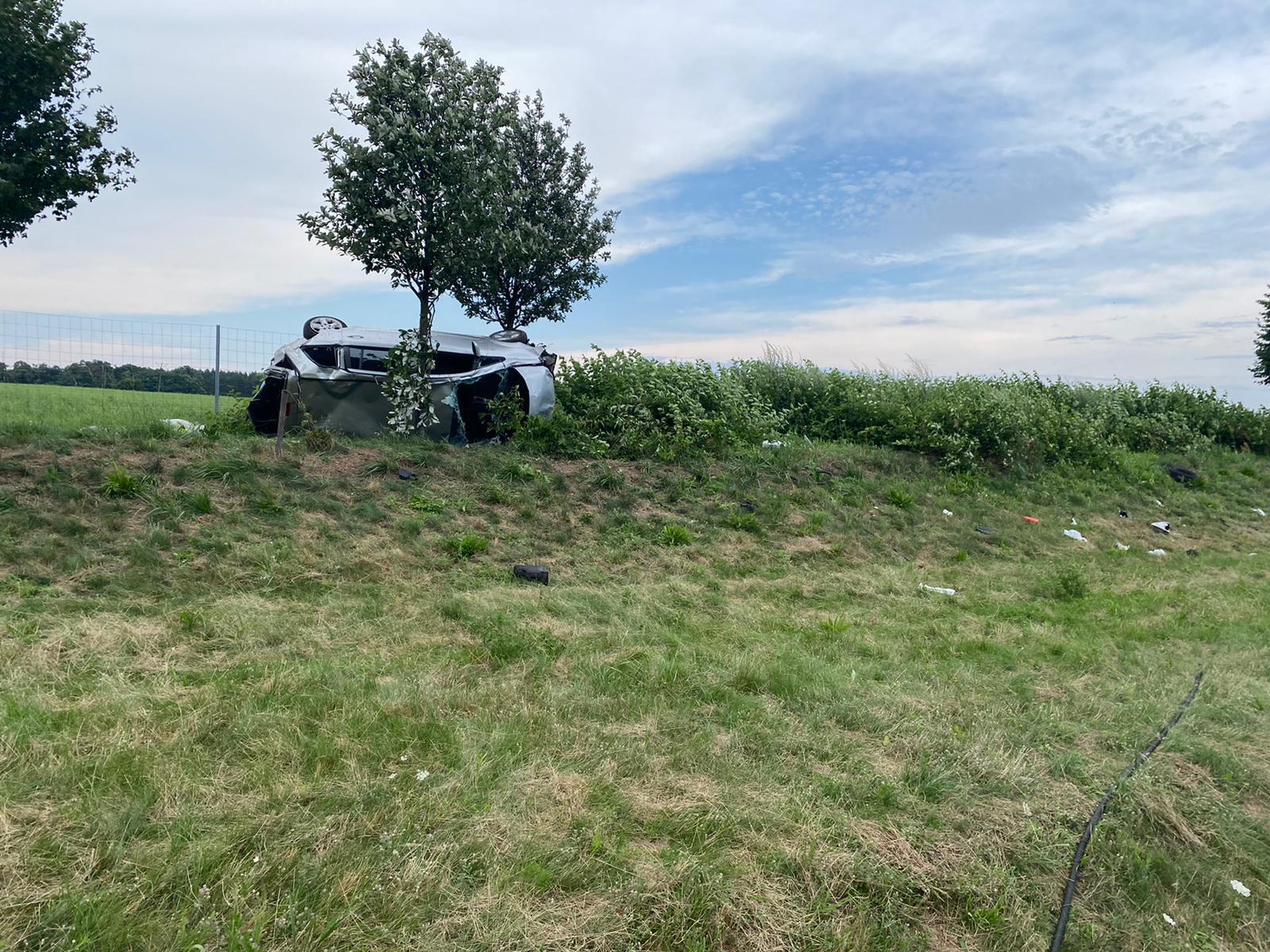 W drugim zdarzeniu doszło do wypadku samochodu osobowego, którym podróżowały dwie osoby. Obie na skutek zdarzenia odniosły obrażenia i przetransportowano je do szpitali. Ze względu na lądowanie śmigłowca LPR zamknięto pas ruchu w kierunku Świecka. W działaniach udział brały cztery zastępy z JRG i OSP, śmigłowiec LPR, ZRM, Policja oraz służby autostradowe.